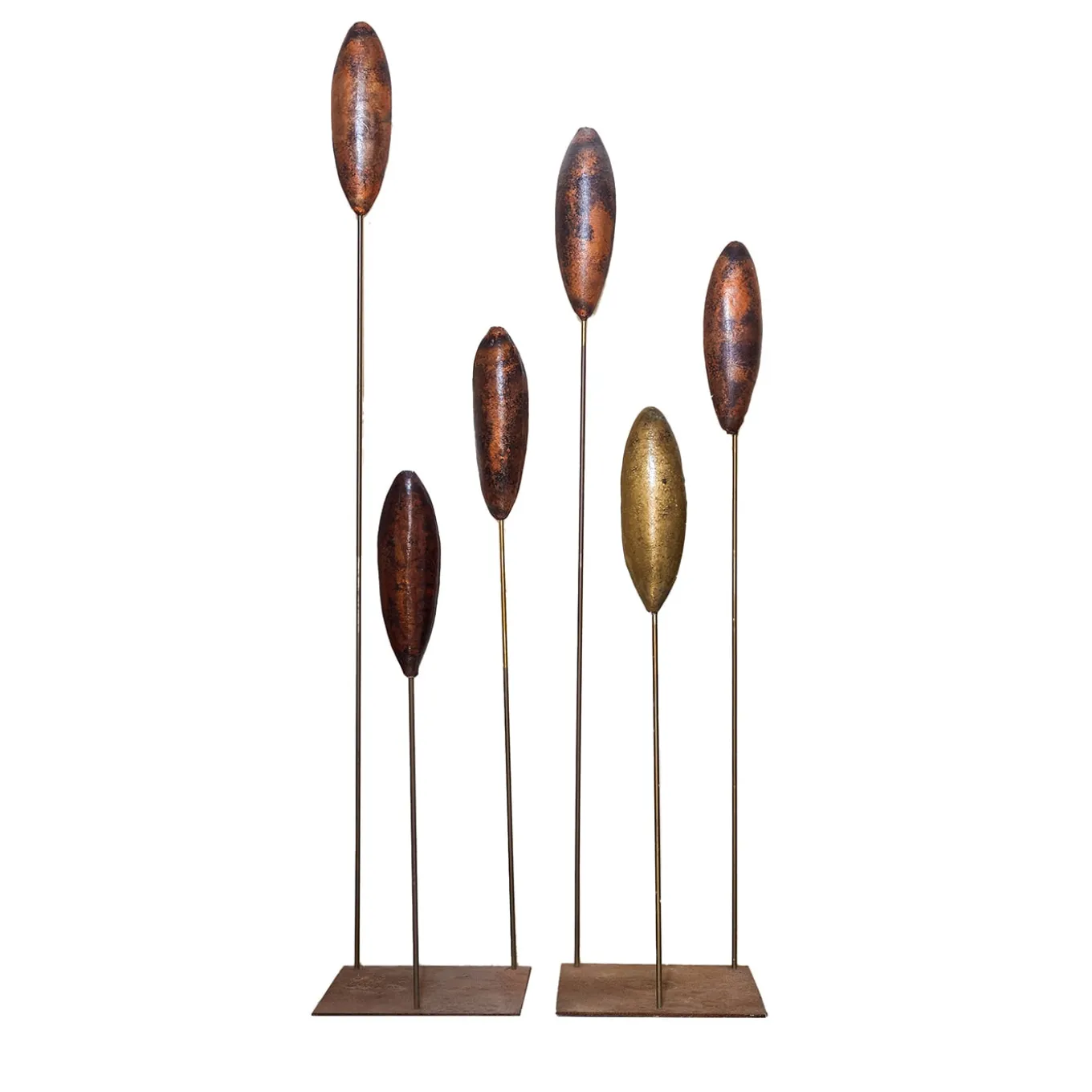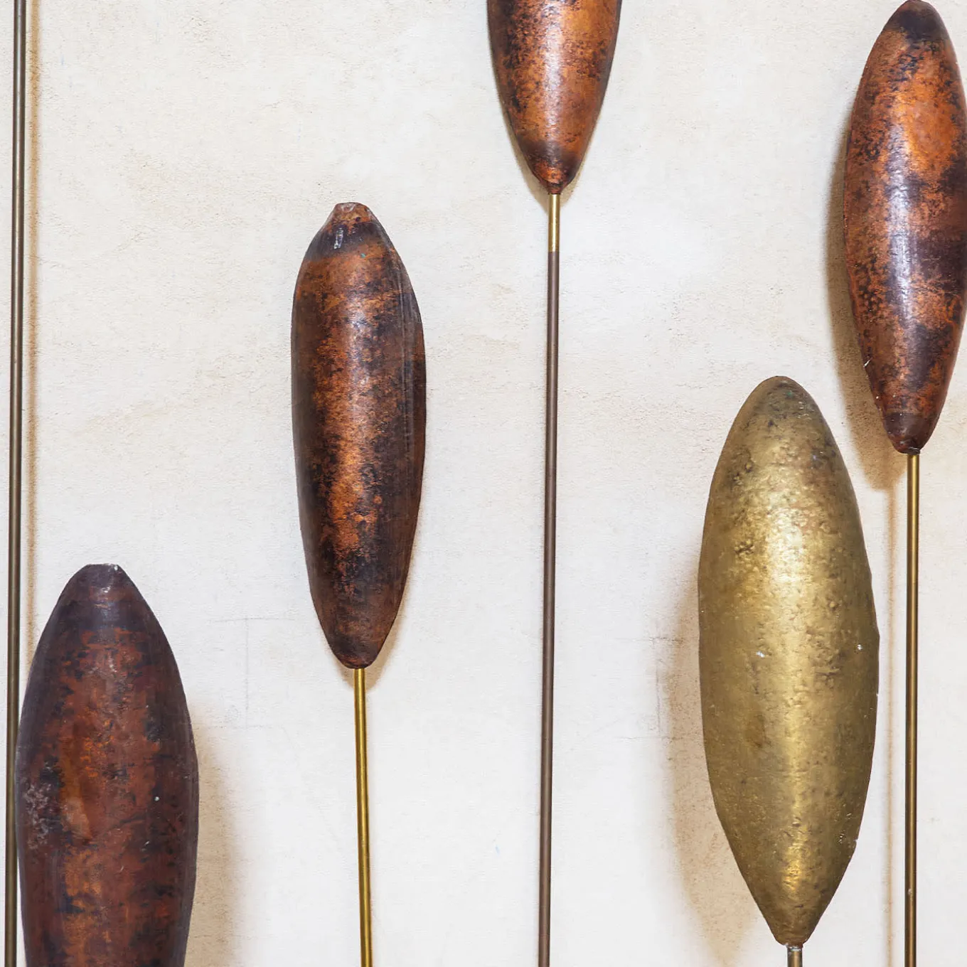 Un totem che incorpora elementi in ottone, rame sbalzato e ceramica, questa scultura ricrea in modo giocoso il fenomeno della migrazione dei tonni. Partendo da una piastra quadrata, i sottili elementi tubolari possono essere personalizzati in altezza per ottenere la disposizione desiderata. Si prega di informarsi presso il Concierge per esplorare tutte le opzioni di personalizzazione disponibili.