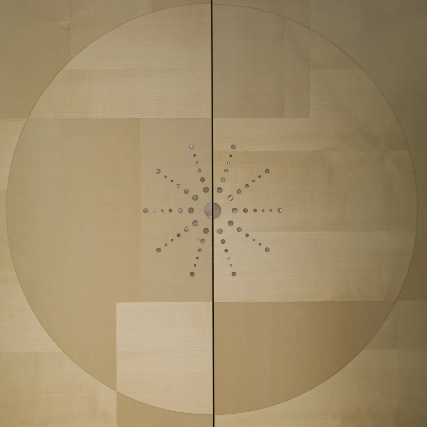 Parte della collezione Etoile, questo mobile può essere esposto da solo in una camera da letto moderna o classica, oppure può essere abbinato agli altri pezzi della stessa serie per un look sontuoso. Ispirato ai mobili art déco, questo mobile è stato realizzato a mano in palissandro e acero e poggia su una base in legno di Toulipier con finitura dorata. Le due ante presentano una splendida decorazione di intarsi in acero che creano un motivo decorativo geometrico con un elemento centrale rotondo, ornato da inserti in madreperla. L’interno, dipinto con lacca rossa, presenta tre cassetti e due ripiani in vetro con specchio posteriore.
