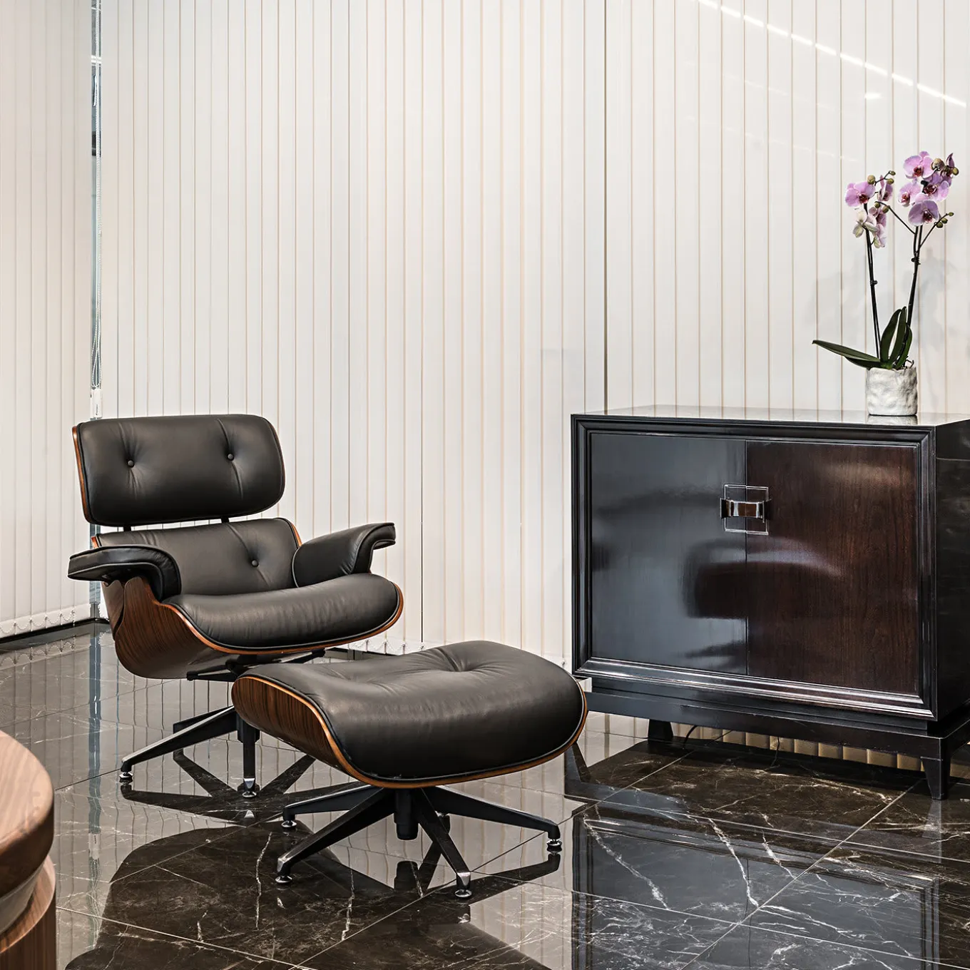 Questo lussuoso mobile bar a due ante in ebano Makassar è dotato di due ripiani interni in vetro trasparente progettati per riporre elegantemente attrezzature per cocktail e squisite collezioni di bicchieri. La sofisticata silhouette che lo caratterizza è un trionfo dell’intenso fascino dell’ebano, interamente lavorato da esperti artigiani e arricchito da pregiati inserti in pelle.