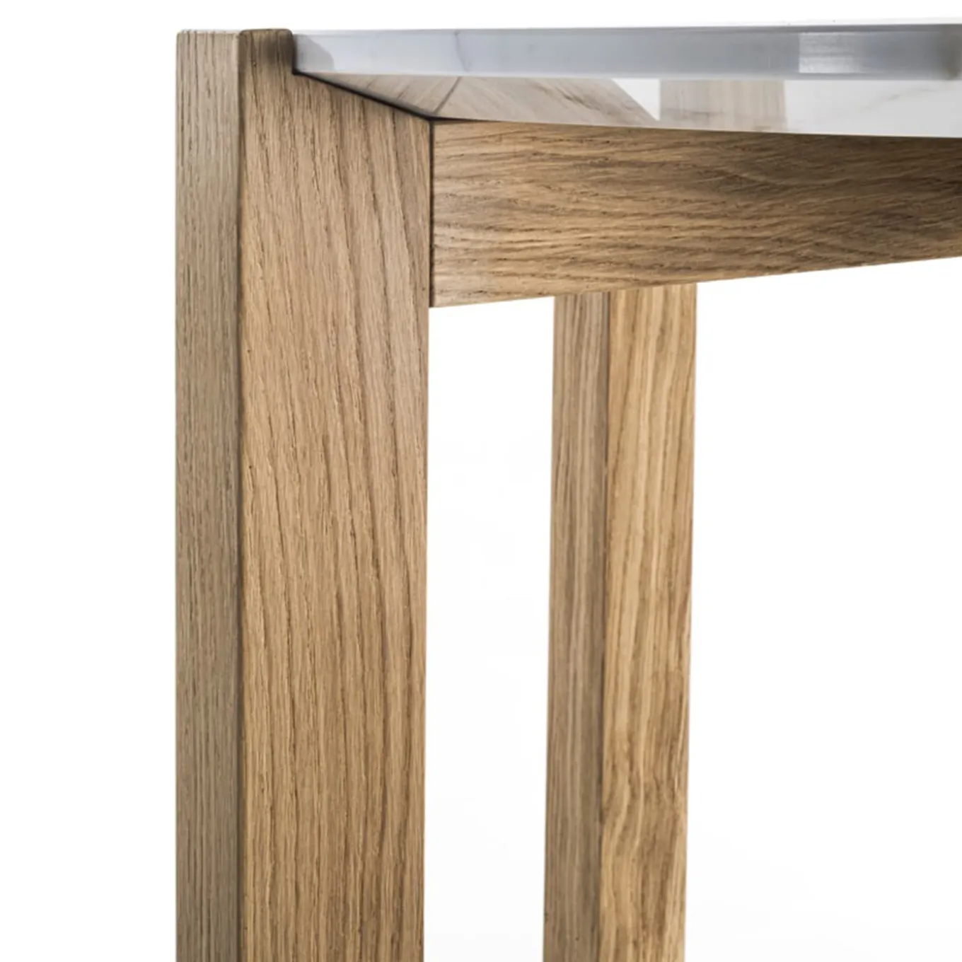 L’essenzialità incontra il lusso in questo splendido tavolino rotondo realizzato in legno massiccio e marmo bianco pregiato. Il piano circolare in marmo, con i suoi intricati tracciati, poggia su quattro gambe in legno rigorosamente scolpite grazie a un discreto sistema di incassi. Un complemento ideale per arredamenti contemporanei che esaltano le venature naturali delle gambe.