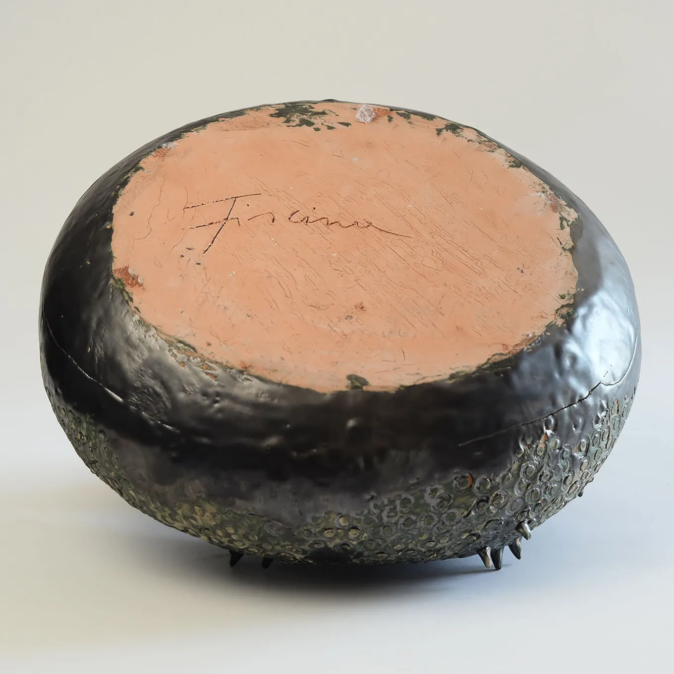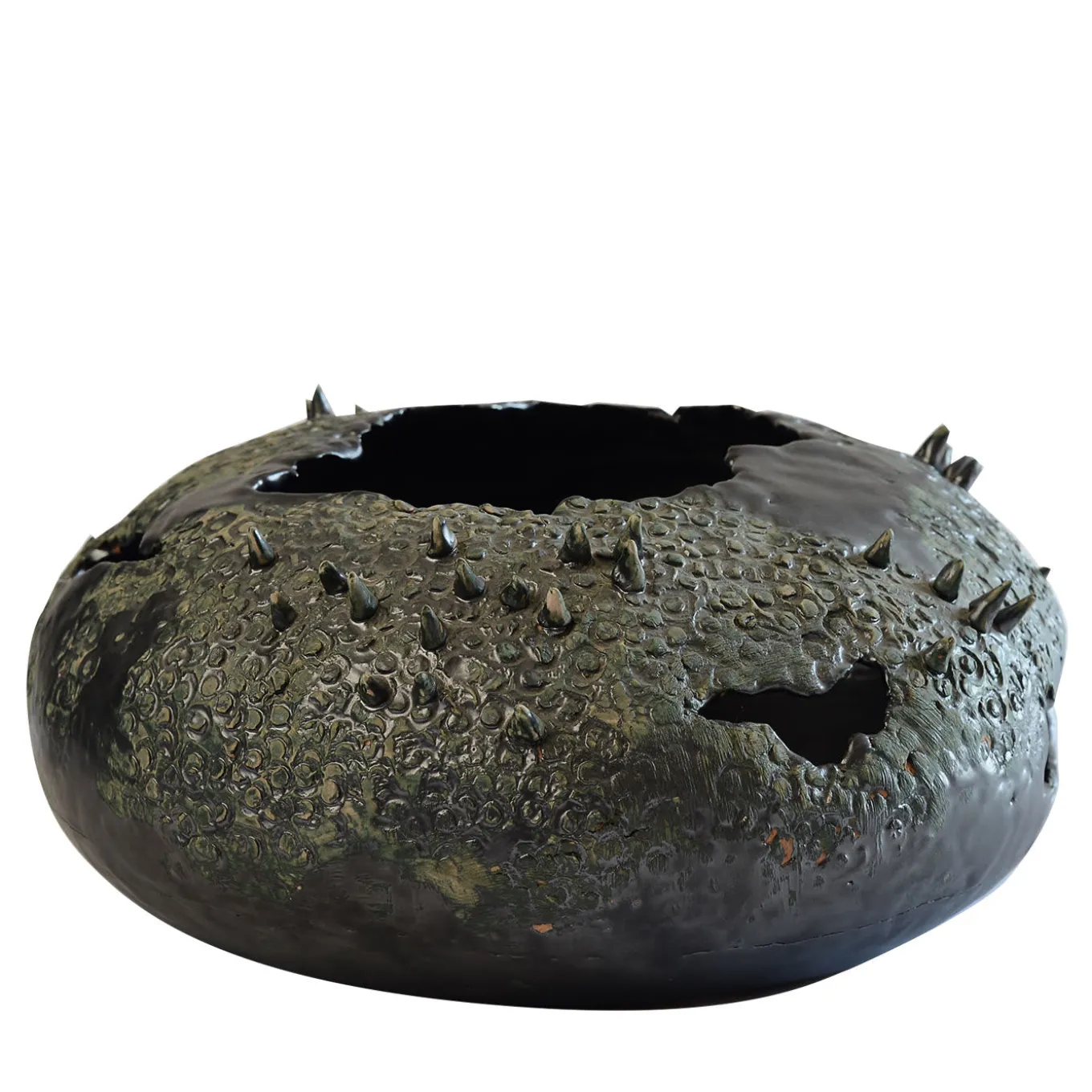 Questa scultura, unica nel suo genere, fa parte della serie Naturalia ed è stata realizzata interamente a mano in terracotta con la tecnica dell’arrotolamento, per poi essere ricoperta da ricchi smalti e ossidi nei colori antracite e verde. Questo pezzo unico non è riproducibile.