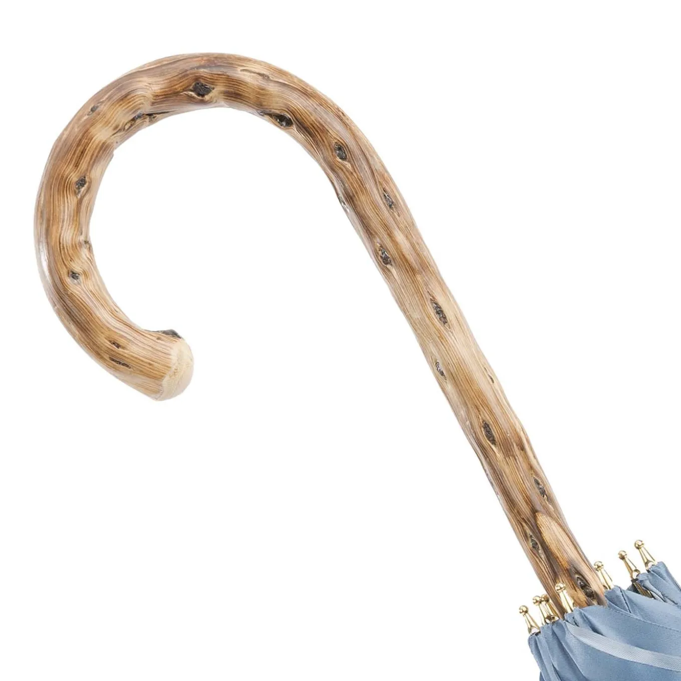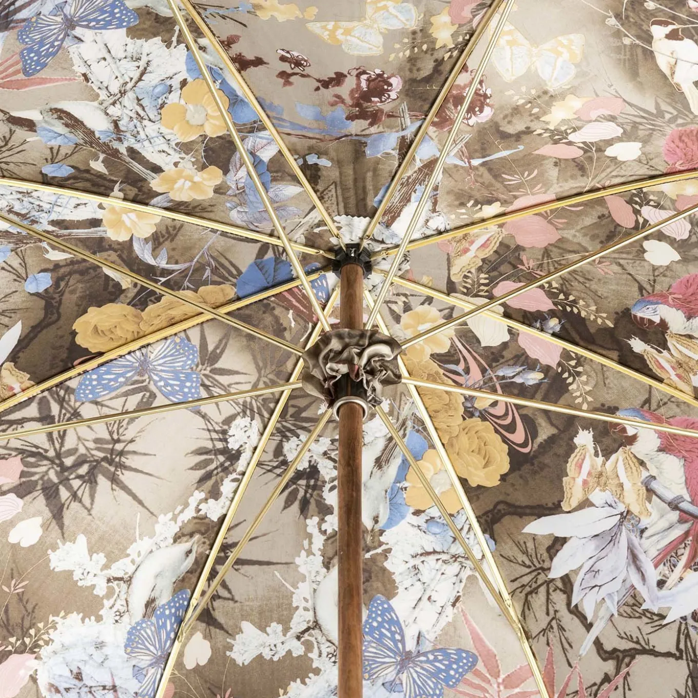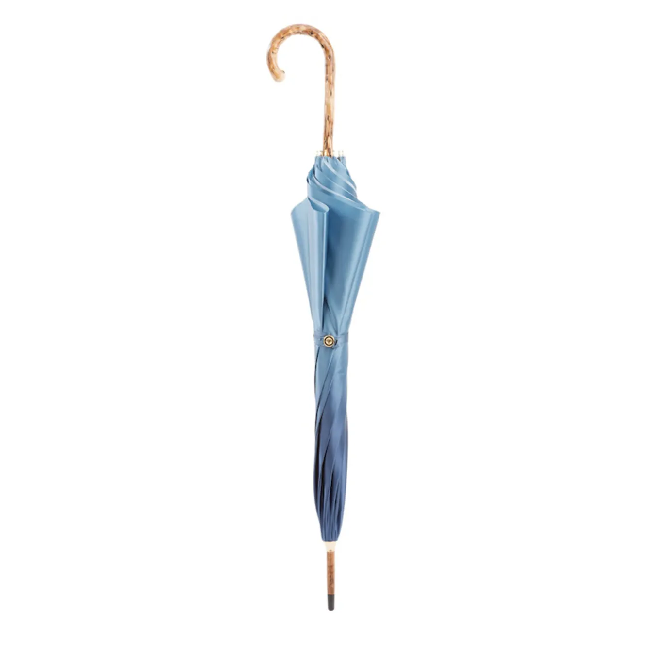 Realizzato a mano in Italia, questo ombrello di naturale bellezza presenta un fusto in legno di ginestra lungo 93 cm e un’apertura manuale. Il baldacchino misura 102 cm ed è realizzato in doppio tessuto di poliestere al 100% di colore azzurro all’esterno e decorato con un motivo naturale all’interno.