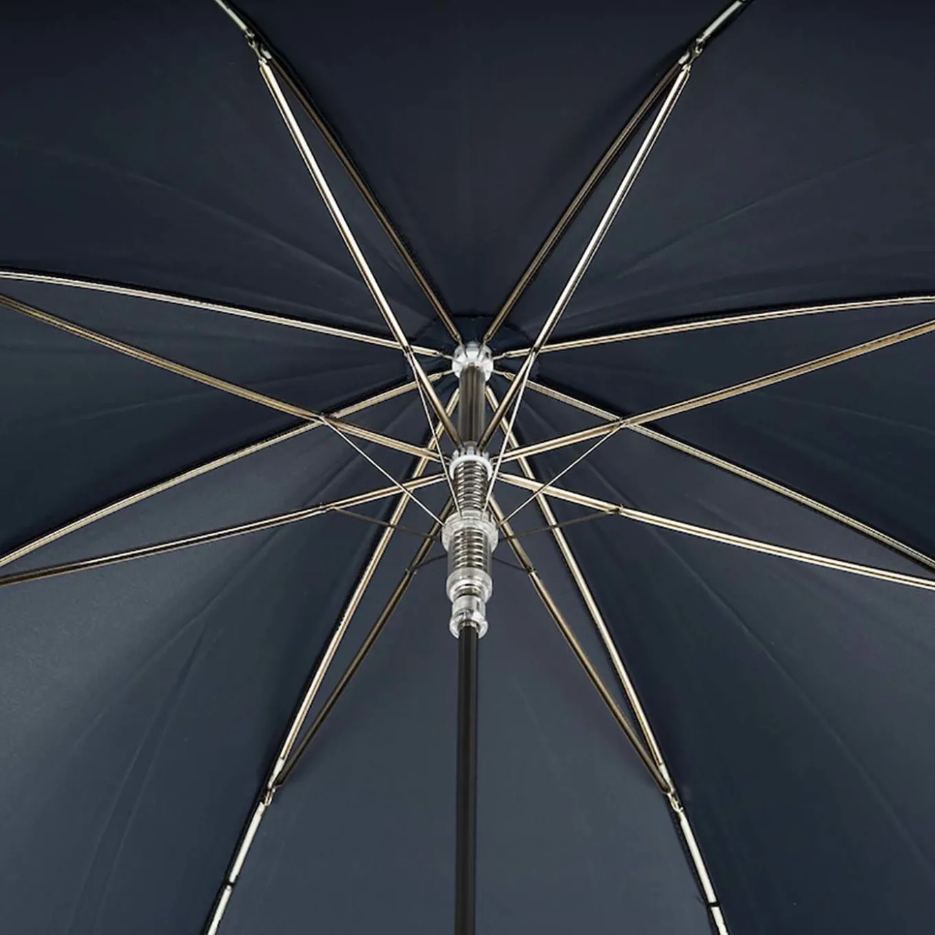 Affilato e distinto. L’ombrello Navy con manico d’aquila in argento, firmato Pasotti, non ha nulla da invidiare nemmeno al tempo peggiore. Perfetto per le occasioni eleganti, il manico di lusso a forma di testa d’aquila crea uno stato d’animo feroce per aiutarvi ad affrontare qualsiasi cosa il cielo vi riservi. Apertura automatica. L’ombrello è realizzato a mano in Italia.