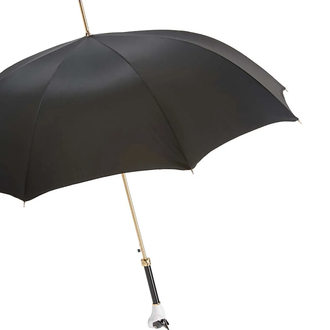 Progettato e realizzato in Italia da Pasotti, maestri degli ombrelli di lusso, questo ombrello in poliestere nero vanta una calotta di 102 centimetri per una protezione completa dagli acquazzoni. Su un fusto dorato, l’ombrello è sormontato da un busto di bulldog francese in ottone e smalto, per il giusto tocco di bizzarria che rallegra ogni mattina di pioggia. Apertura automatica.