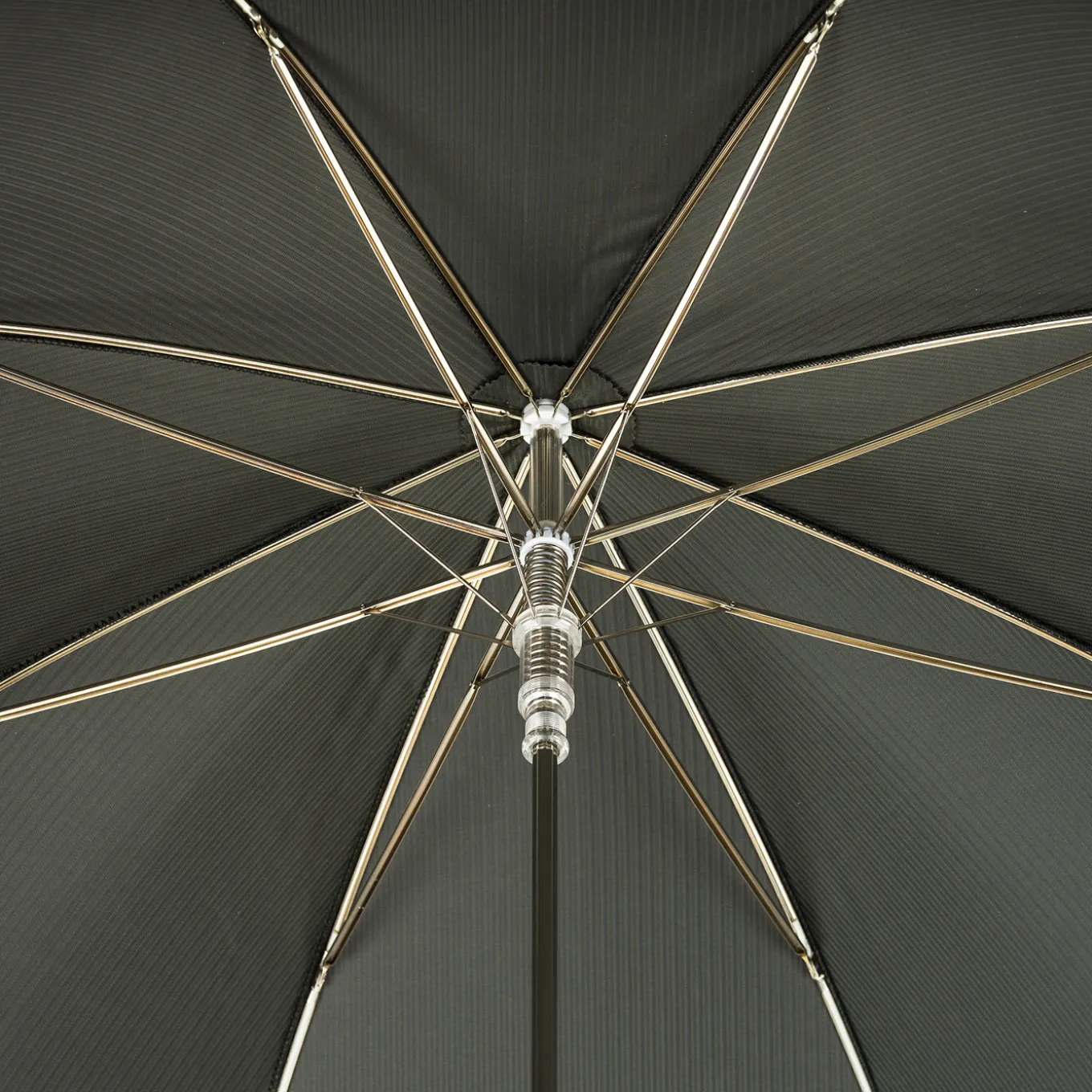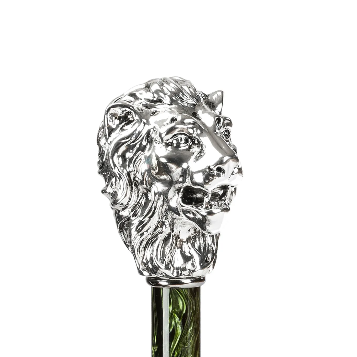 Un ombrello automatico con un elegante manico in resina placcato argento, finemente progettato a forma di testa di leone. Il telo è realizzato in resistente tessuto verde 100% poliestere, unendo funzionalità a un’estetica distintiva adatta all’uso quotidiano. Bilancia l’eleganza classica e il design pratico.