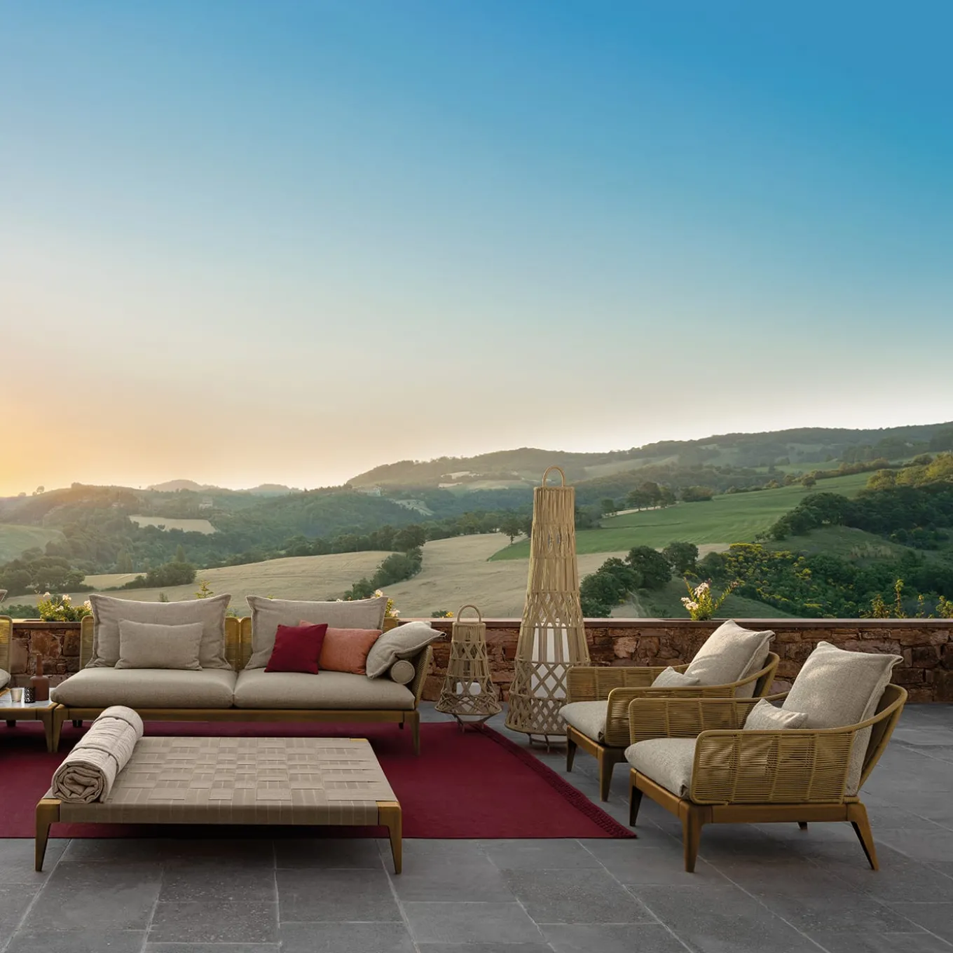 Un ampio e accogliente pouf che invita a un autentico relax, questo splendido progetto di Ludovica e Roberto Palomba combina legno di Teak affumicato e tessuto Twill beige in una forma pulita e sofisticata. Di altezza contenuta, si inserisce perfettamente in un arredamento contemporaneo. Per maggiori informazioni, rivolgersi al Concierge.