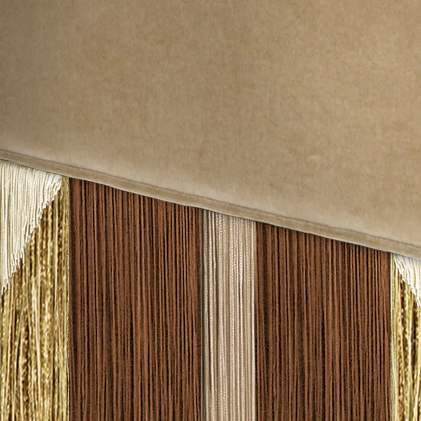 Eccellenza sartoriale ed eleganza cromatica si fondono in questa superba panca artigianale. Caratterizzata da una robusta anima in faggio, si distingue per la serie di frange in viscosa nei toni della terra, disposte con cura per creare un intrigante motivo di ispirazione tribale. Il comfort perfetto è garantito dall’ampio sedile curvilineo rivestito in pregiato velluto beige. Contattare il Concierge per le opzioni di personalizzazione. Ogni pezzo su misura è impresso sul fondo della fodera del pouf e firmato, numerato e datato personalmente dal designer.
