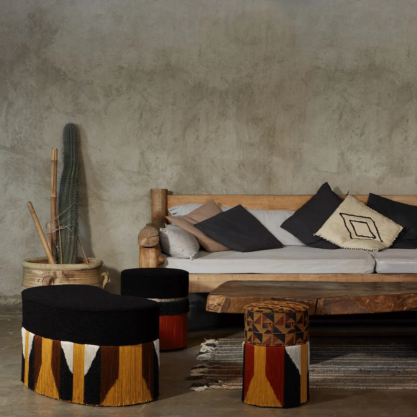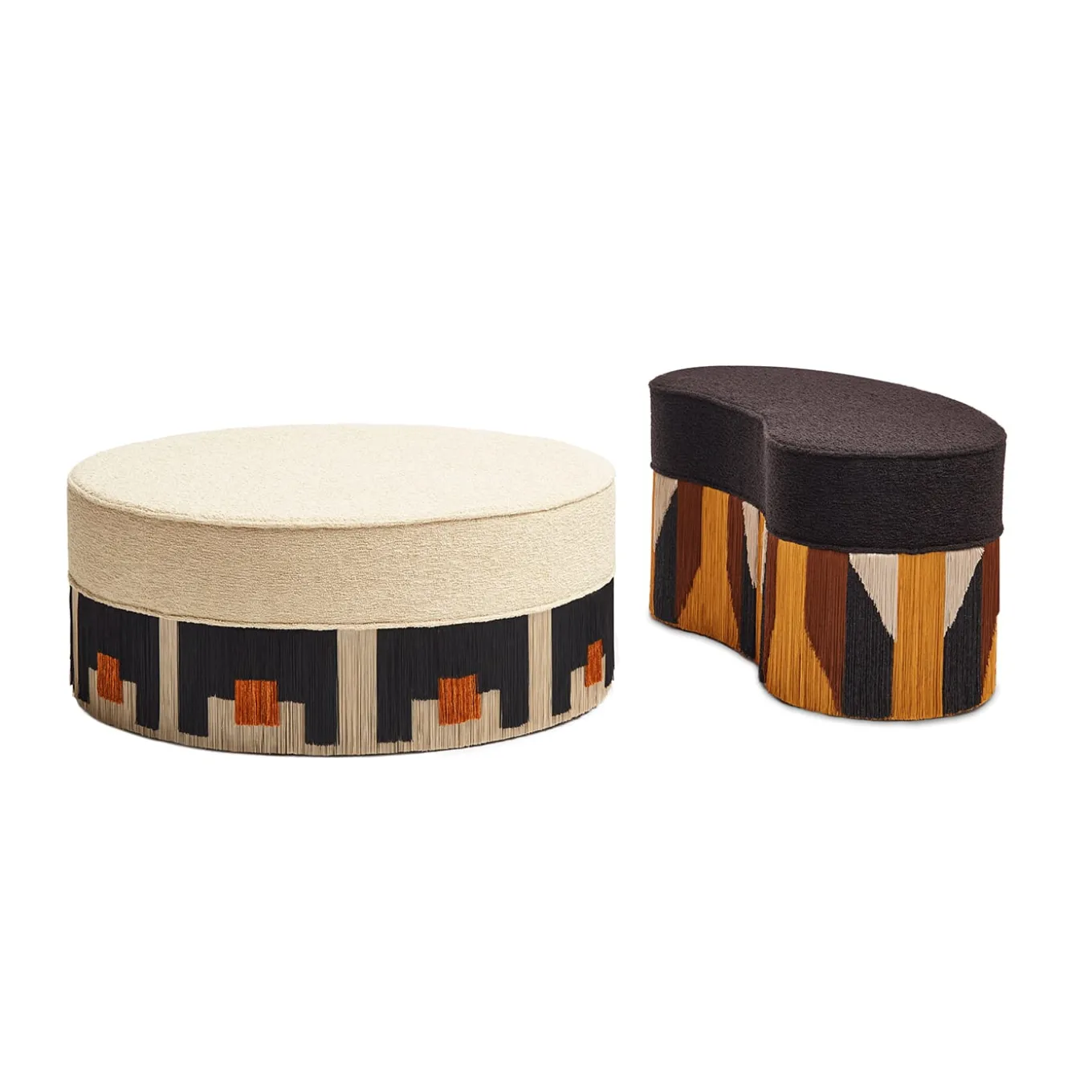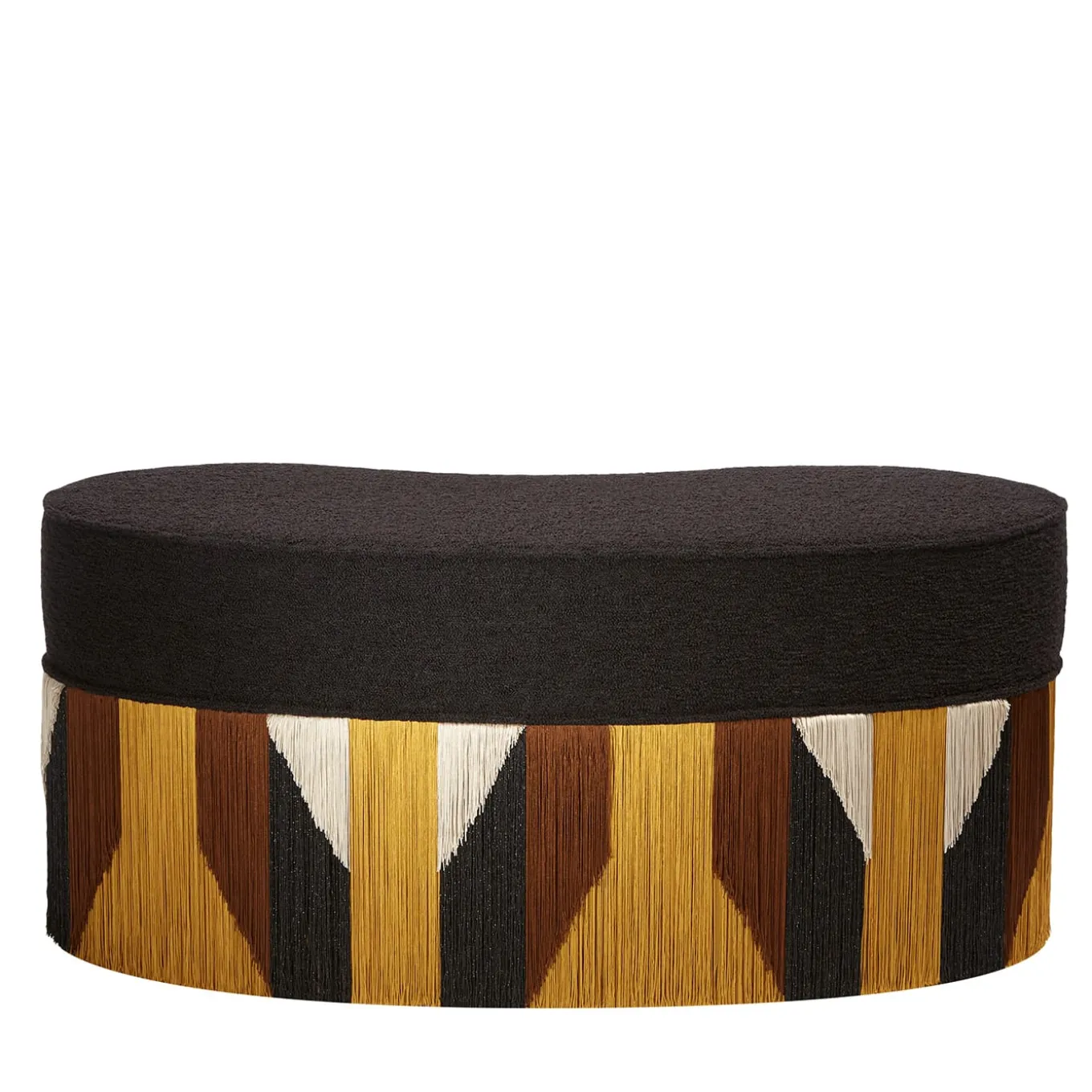 Questa versatile panca a forma di fagiolo, realizzata dalla poliedrica Lorenza Bozzoli, infonderà un tocco di modernità a qualsiasi interno commerciale o residenziale. Interamente realizzata a mano e personalizzata con la firma e il numero dell’artista, questa singolare panca sfoggia un design sorprendente con la sua seduta imbottita nera e la gonna con frange ispirate all’arte nativa in viscosa e lurex nero. La personalizzazione è disponibile su richiesta, si prega di contattare il Concierge per i dettagli.