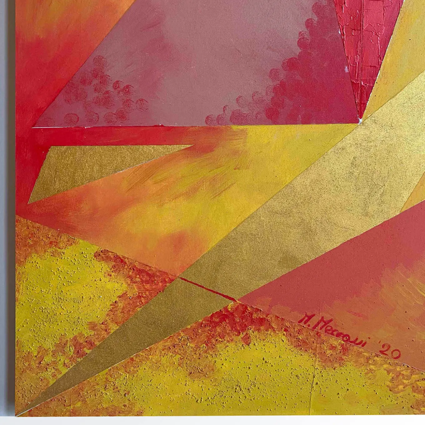 Superlativa opera a tecnica mista dell’artista Mascia Meccani, questo pannello decorativo creerà un punto focale audace e di grande impatto visivo se esposto in un raffinato interno contemporaneo. Dipinto e decorato a mano su legno, presenta un magnifico insieme di forme geometriche e texture ottenute con l’aggiunta di stucco, sughero e sabbia. Questo pezzo è unico, ma può essere riprodotto in diverse dimensioni con lievi variazioni di design grazie alla sua natura artigianale.