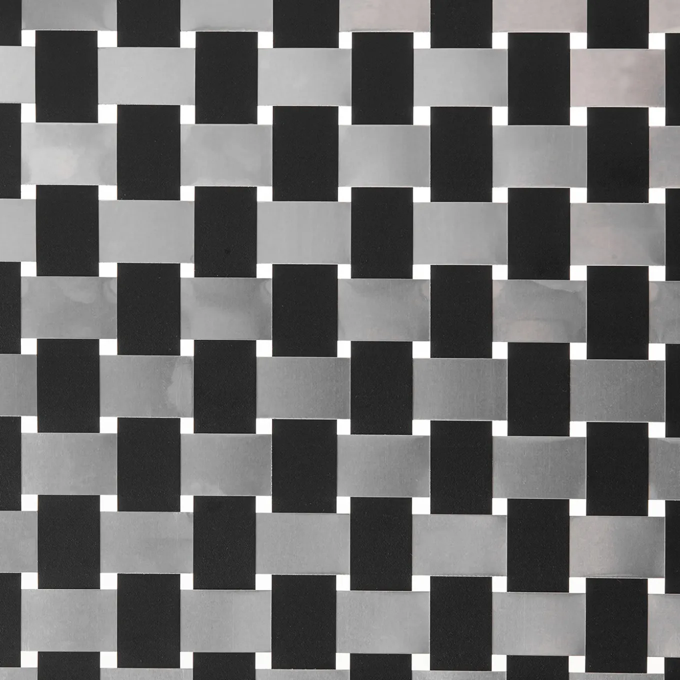 Questo sofisticato pannello da pavimento è caratterizzato da un’elegante e sottile cornice color oro e da un’elegante tela Op-Art degli anni ’60. Altamente versatile, questo stile a doppio uso può essere utilizzato come divisorio per ambienti o come sfondo decorativo se posizionato contro una parete. Il suo corpo intrecciato comprende fogli di alluminio nero e naturale recuperati durante la produzione di rifiuti industriali.