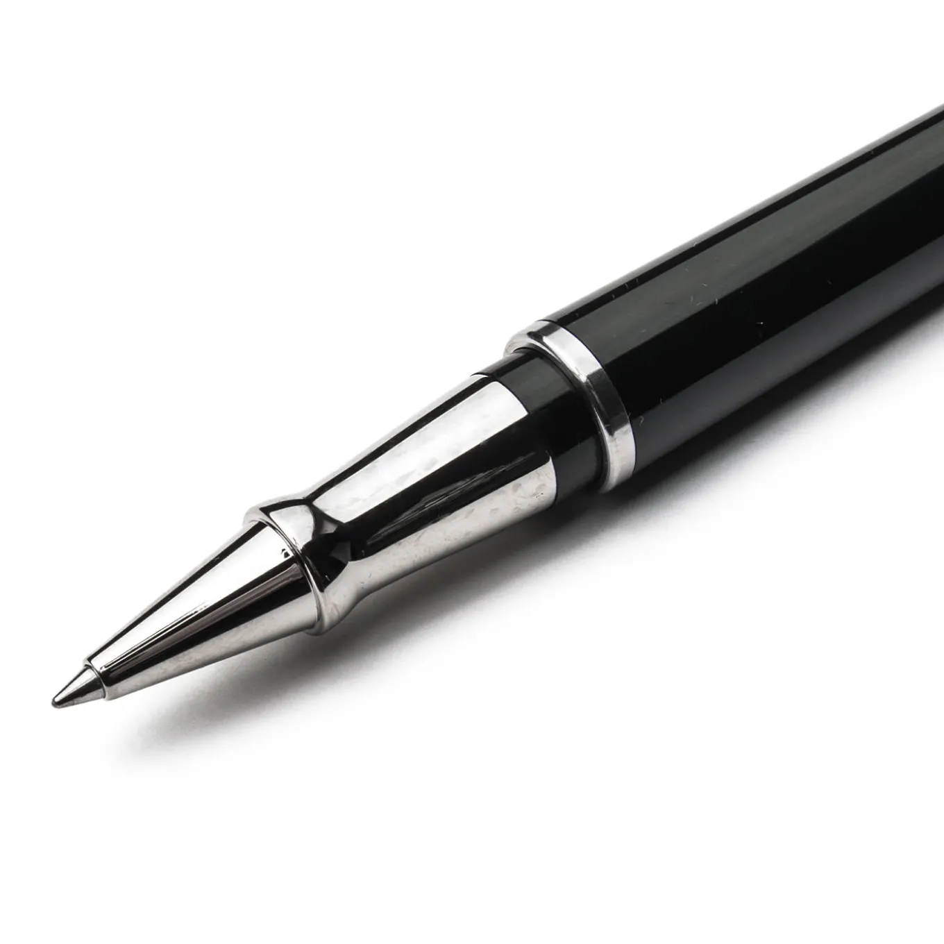 Questa stilografica ultra-elegante si distingue per il corpo nero in UltraResin, uno speciale materiale sviluppato da Pineider mescolando madreperla e resina per migliorare la resistenza agli agenti atmosferici e la durata. Le parti della penna sono assemblate con un sistema a incastro senza colla e presentano una clip a forma di piuma in acciaio marino, una chiusura soft-close del cappuccio, completata da una fascia centrale luminosa con lo skyline di Firenze finemente inciso. Il caricamento è a cartuccia o a converter e il pennino in acciaio è disponibile in diverse misure. Si prega di contattare il Concierge per le opzioni di personalizzazione disponibili.