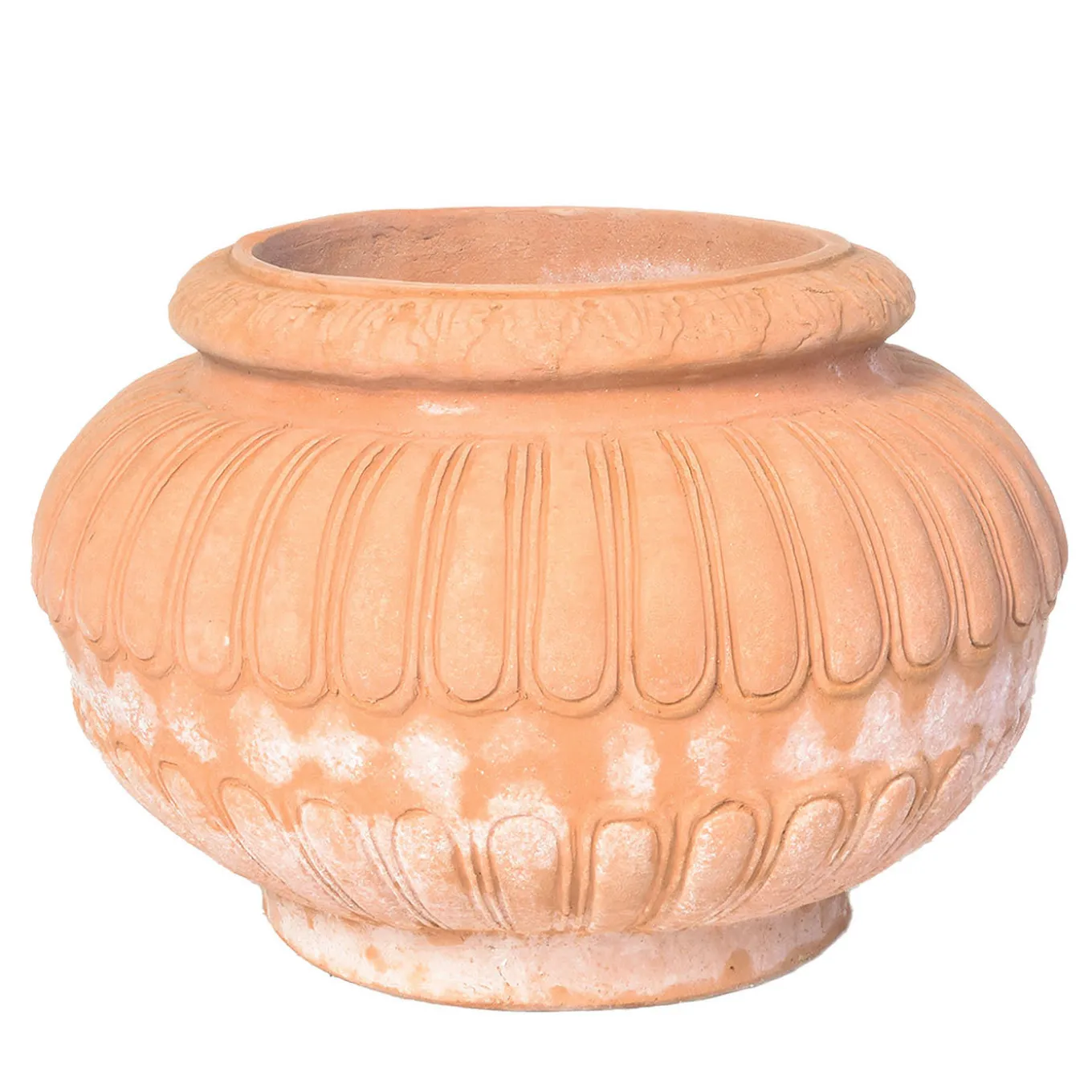 Questo singolare vaso in terracotta presenta una silhouette delicata e rigonfia, squisitamente ornata da decorazioni in rilievo che ricordano i petali dei fiori. È realizzato interamente a mano da maestri artigiani con uno specifico tipo di argilla proveniente dall’Impruneta, rinomata per la sua eccezionale qualità antigeliva. Certificato CAT.