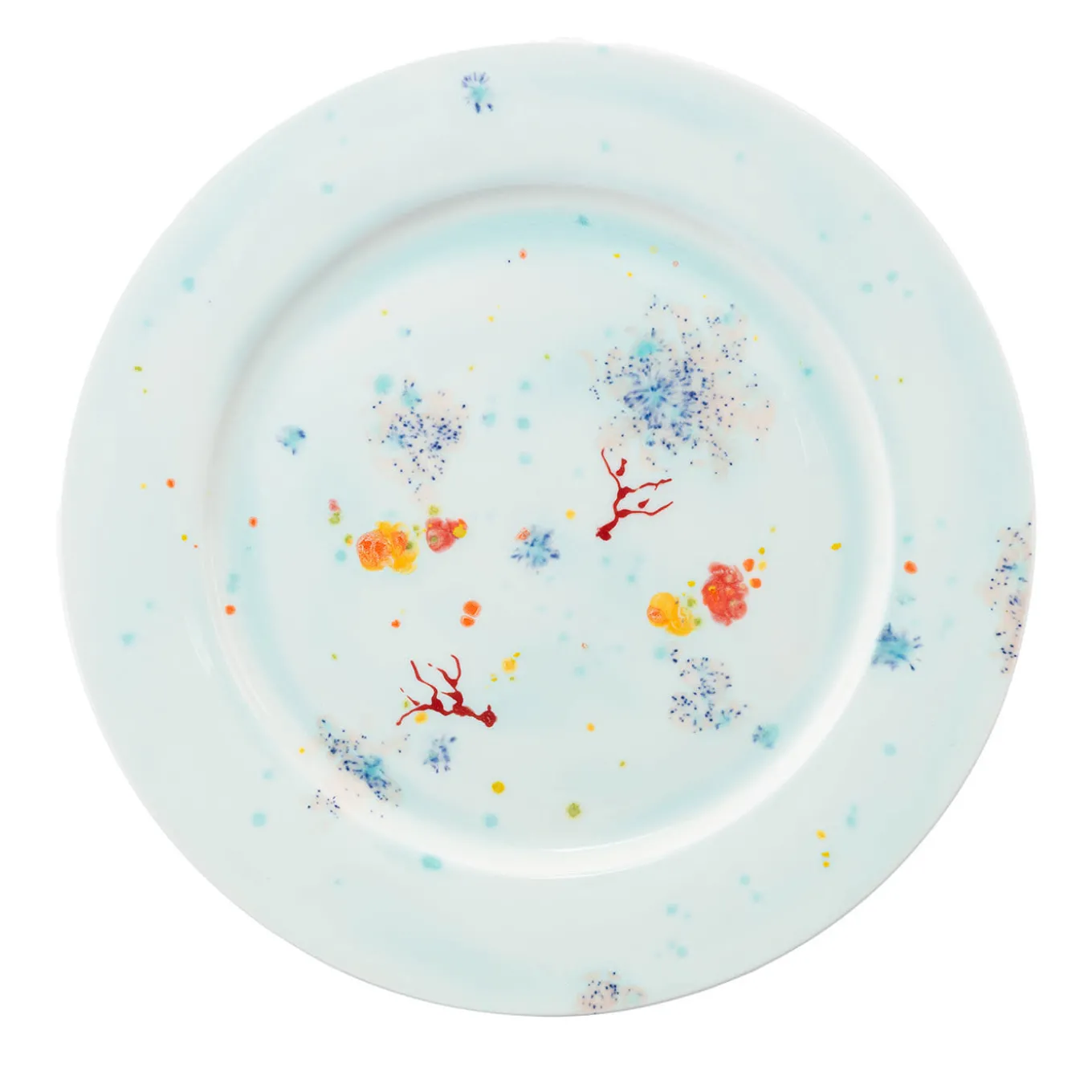 Parte della collezione Corallo, presentata per la prima volta alla Milano Design Week 2018, questo piatto da portata è una superba aggiunta a una casa moderna, dove può essere utilizzato per servire il cibo in tavola o per esporre in modo permanente oggetti da collezione in altre stanze della casa. È realizzato a mano in fine porcellana e ornato da un’interpretazione stilizzata della vita marina, con coralli, sabbia rosa e altre creature colorate che punteggiano l’azzurro dello sfondo. Questo pezzo può essere abbinato agli altri piatti da portata della serie per un look coeso. Lavabile in lavastoviglie.