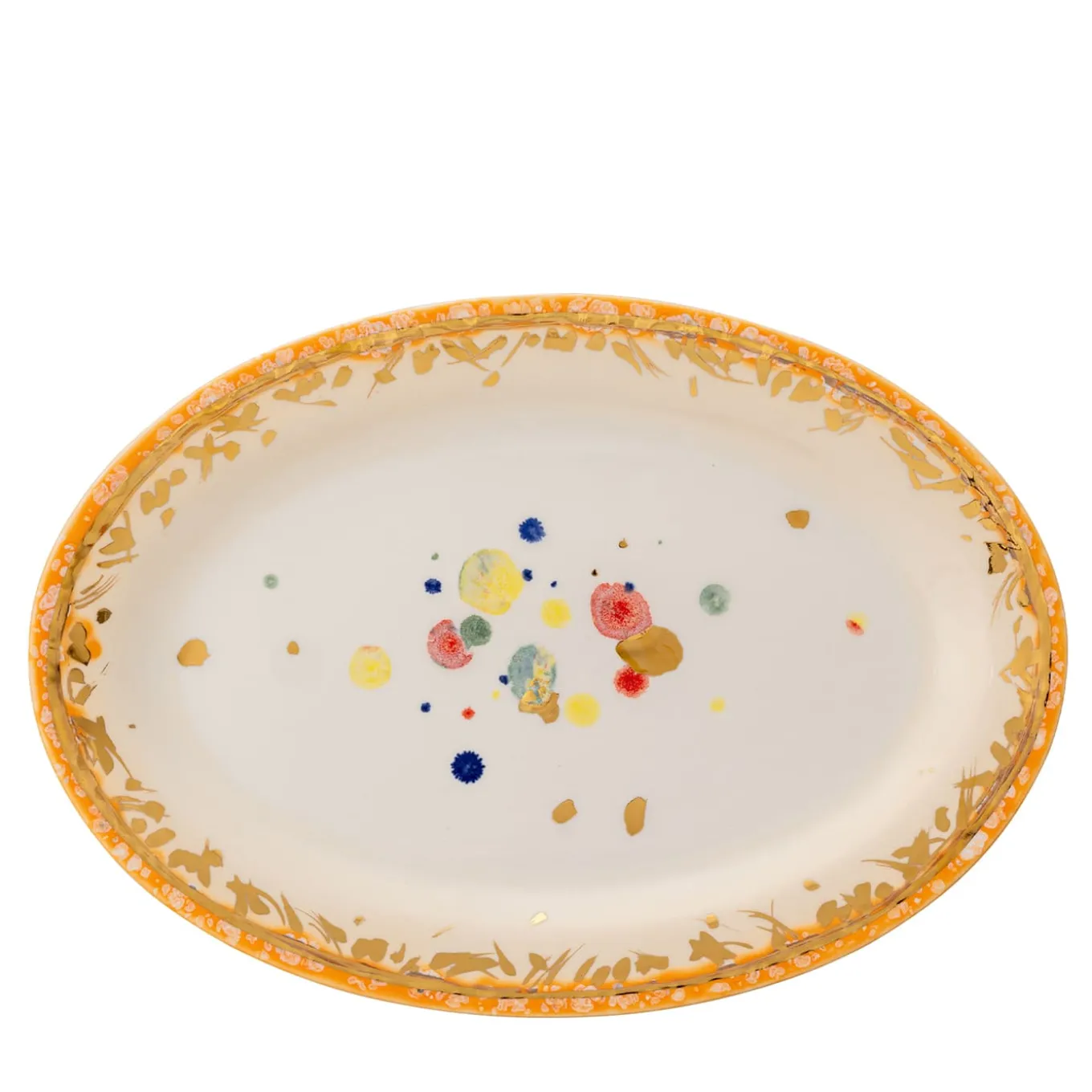 Il piatto da portata Miami della collezione Florida, lanciata nel 2023, incarna lusso e allegria. Ispirato allo spirito vibrante della Florida, questo pezzo è caratterizzato da un brillante arancione Miami che evoca l’atmosfera vivace delle sue famose spiagge e dei suoi tramonti. Il design presenta un centro leggermente colorato, ornato da giocosi punti multicolore. Il bordo, elegantemente rifinito, è riccamente decorato con foglie dorate che ne esaltano la raffinatezza.
