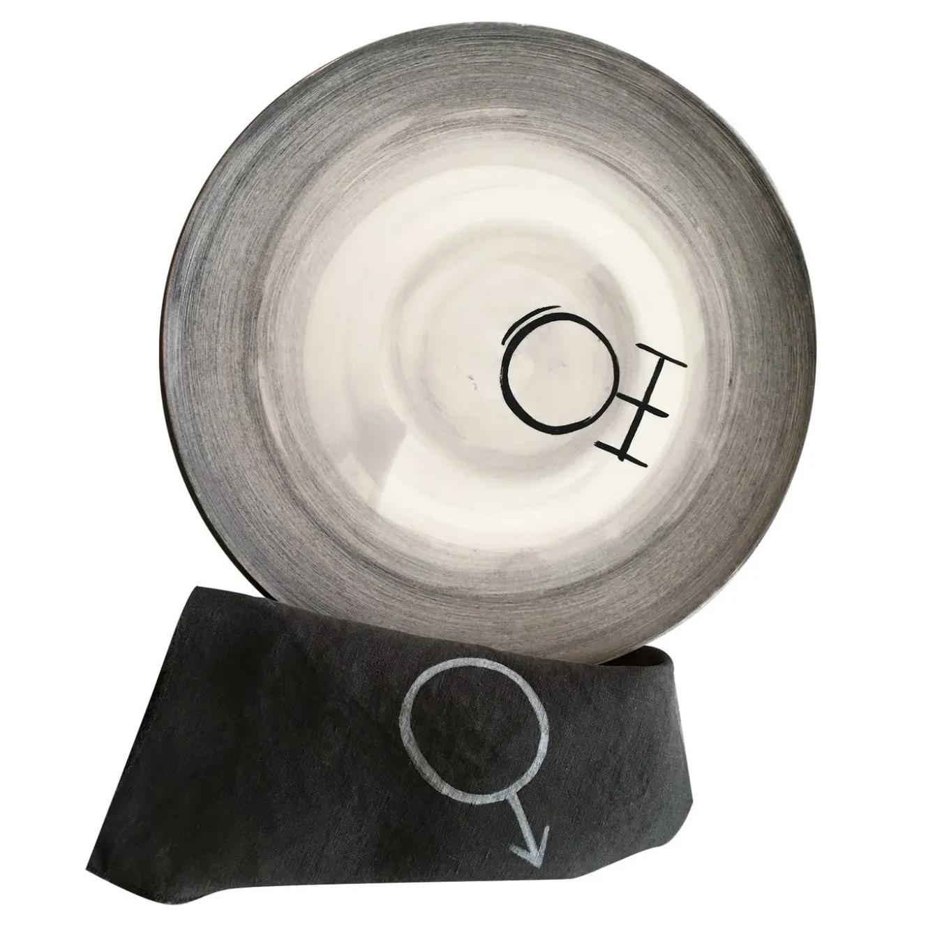 Ispirata ai pianeti del nostro sistema solare, questa collezione di piatti aggiungerà una decorazione unica alla tavola. Lo sfondo lucido del piatto è stato dipinto a mano con un bordo grigio e un simbolo centrale del pianeta Urano. L’elegante combinazione di colori grigio, nero e bianco rende questo pezzo un’aggiunta perfetta a una casa moderna, dove può essere combinato con gli altri pezzi della collezione Pianeti. È possibile abbinare questo piatto a un tovagliolo di lino della stessa serie.