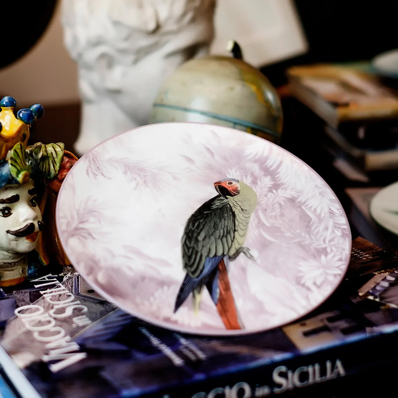 Questo squisito piatto sarà un’aggiunta superba alle sale da pranzo moderne e tradizionali per infondere loro uno stile distintivo e raffinato. Fa parte della collezione Menagerie Ottoman. Un pappagallo colorato è il punto focale di questo piatto, il cui piumaggio verde, blu e rosso è reso con un dettaglio squisito che si avvicina alla realtà. I colori vivaci del pappagallo lo fanno risaltare sullo sfondo floreale bianco e grigio, creando un’elegante danza di luci e ombre. Questo pezzo è meglio disposto con gli altri cinque della stessa collezione.