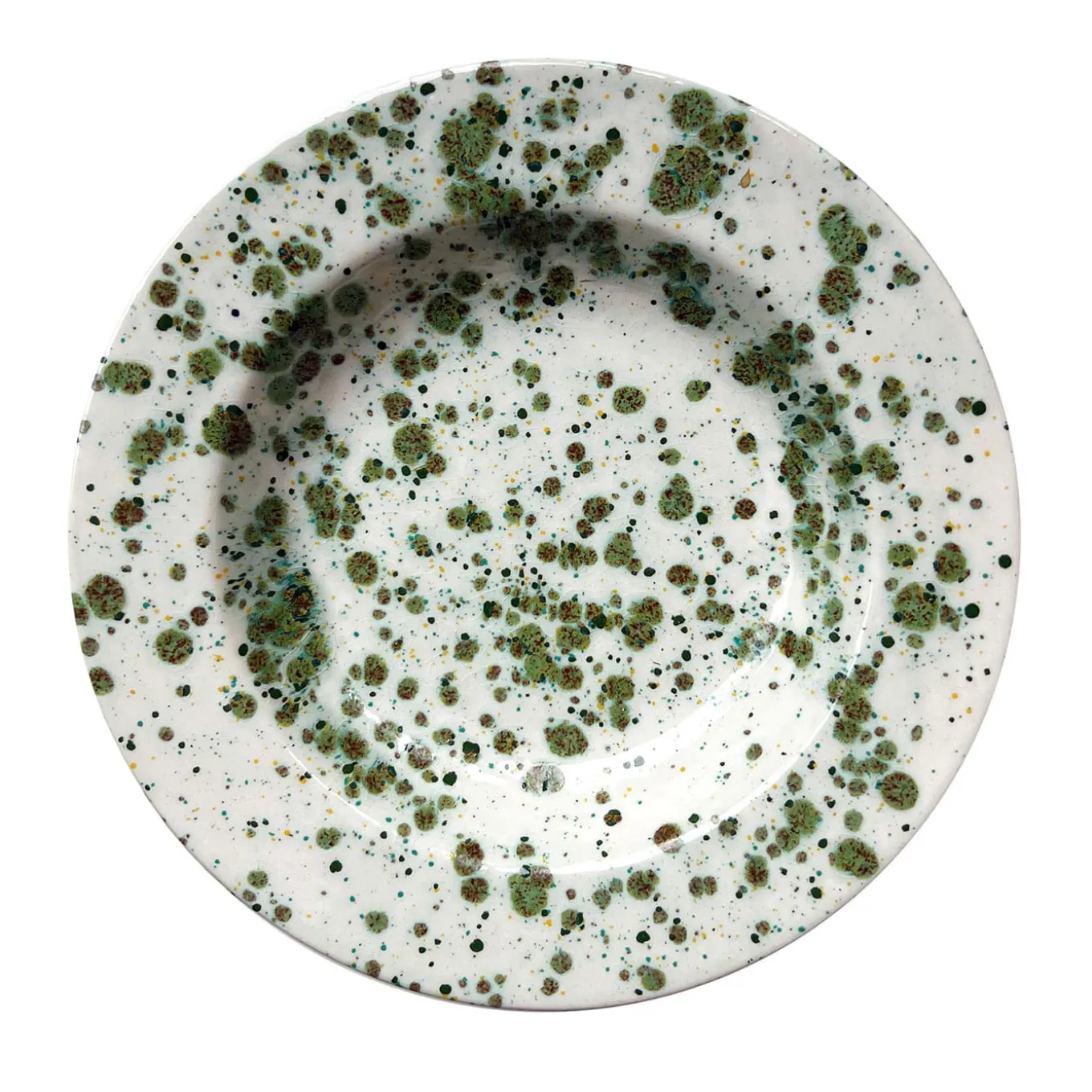 Questo superbo piatto fondo in ceramica catturerà sicuramente l’attenzione in qualsiasi tavola contemporanea. Il suo caratteristico fascino artistico è dovuto a una generosa decorazione di gocce verdi che creano uno splendido motivo irregolare sullo sfondo bianco. Un accurato processo di pittura a mano è alla base di questo pezzo, che è disponibile anche in versione piatto da pranzo e piatto da frutta, a suggerire un look coeso.