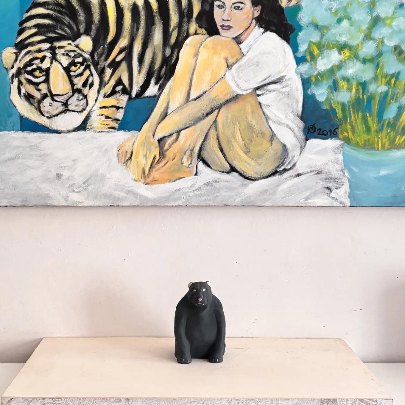 Parte di una collezione di sculture raffiguranti animali dai colori eleganti e dai volumi decisi, questa piccola pantera aggiungerà un accento decorativo unico a un arredamento contemporaneo. È realizzata interamente a mano in argilla bianca, notevole per il suo contenuto di caolino naturalmente ricco. Dopo una prima fase di essiccazione, il pezzo viene scavato per ottenere uno spessore di 1 cm e poi levigato per ottenere una finitura liscia. Prima della cottura in forno, Daniele Nannini ha dipinto il pezzo con argilla e pigmenti, secondo il metodo tradizionale dell’engobbio, per conferirgli un suggestivo colore nero.