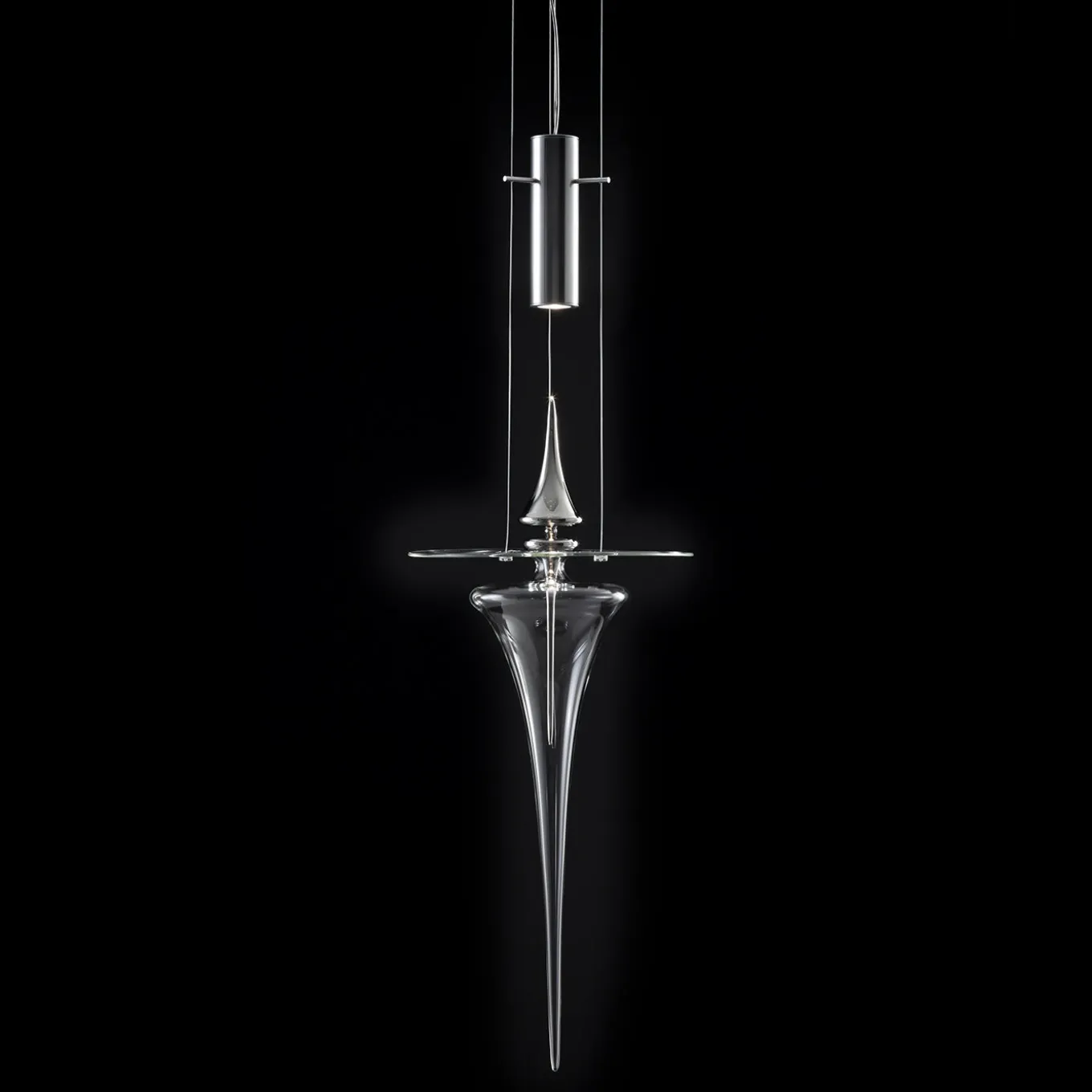 La lampada a sospensione Perfume Spear fa parte di una collezione di luci che trascendono la loro funzione per creare uno spettacolo di luce e riflessi. A metà strada tra il design e l’arte applicata, il pendente è realizzato in vetro trasparente soffiato a mano a forma di lancia. Il pendente è dotato di una calotta in vetro disponibile nei colori trasparente, satinato, platino o oro. Sorgente luminosa: 3W LED 2800k.