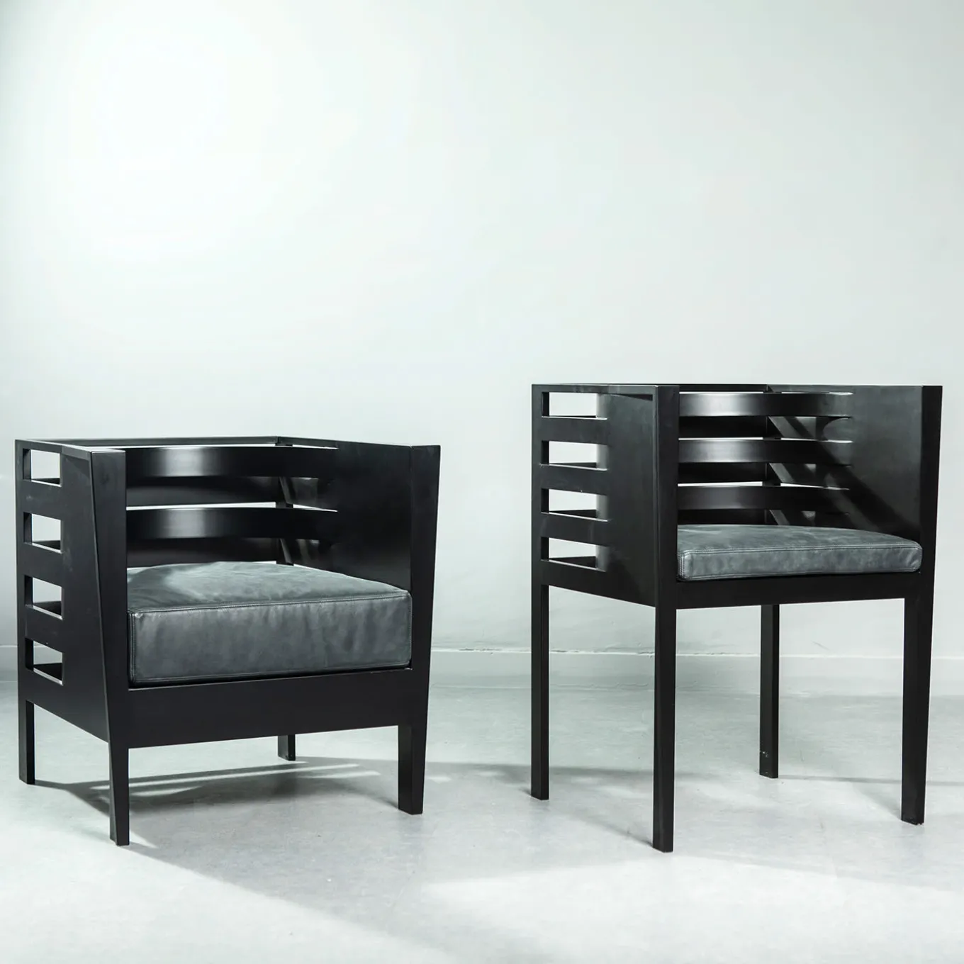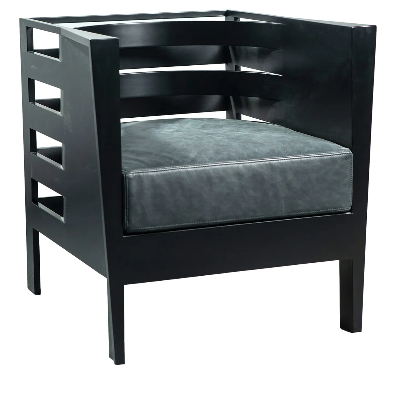 Caratterizzata da una struttura in faggio evaporato con finitura laccata nera opaca, la poltrona è completata da un elegante cuscino in ecopelle nera opaca. La combinazione di materiali resistenti e design elegante la rende una scelta perfetta per gli interni contemporanei.