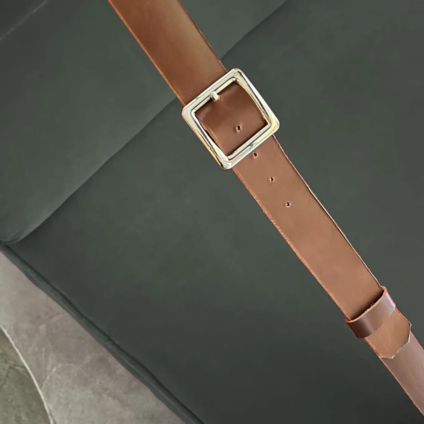 Testimonianza di un comfort senza tempo e di un design contemporaneo, questa poltrona è caratterizzata da morbidi cuscini oversize legati da cinghie di cuoio, che richiamano il fascino dei trasporti cargo d’epoca. Realizzata in “bio-cotone” ecologico e riciclato al 100%, offre lusso e sostenibilità. Il tessuto in velluto verde inglese si abbina alle cinghie in pelle marrone, donando un tocco di eleganza a qualsiasi spazio. Disponibile in due misure, con possibilità di personalizzare i colori dei tessuti, le finiture e il design.