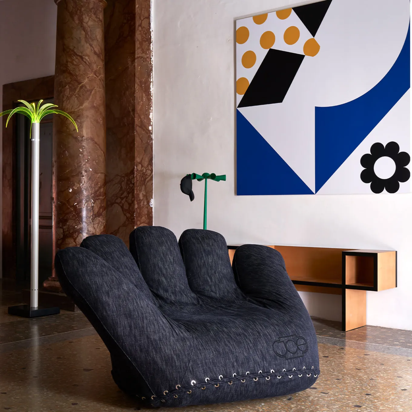 Un design imperdibile, iconico e di stile ineguagliabile, questa poltrona a forma di guanto da baseball celebra il cinquantesimo anniversario della poltrona Joe disegnata da DDL Studio. Rivestita in morbido cotone blu di Prussia e denim di seta, con un forte richiamo alla cultura americana degli anni ’70 e a personaggi di culto come James Dean o Bob Dylan, è un design audace e anticonformista dal carattere singolare. Per ulteriori dettagli, contattare il Concierge.