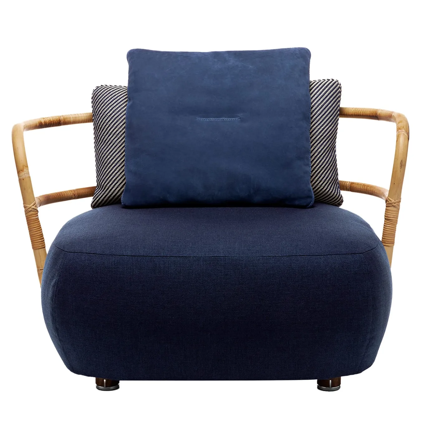 Parte di una straordinaria serie disegnata da Massimo Castagna e ispirata alla natura, questa squisita poltrona è caratterizzata da un profilo ampio e basso che può essere goduto in compagnia come se fosse un divano. Definita da uno schienale inclinato in canna di bambù, la seduta è morbidamente imbottita e rivestita in tessuto blu. I cuscini sono inclusi. Si consiglia una copertura per esterni per proteggere il pezzo quando viene lasciato all’aperto; per maggiori dettagli, contattare il Concierge. Personalizzabile su richiesta. Se i prodotti vengono collocati completamente all’esterno, si consiglia l’acquisto di copriletto a prezzo maggiorato. Contattare il Concierge per ulteriori informazioni e opzioni.