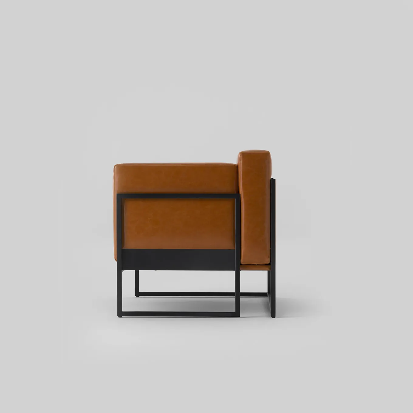 Linee squisitamente pulite ed essenziali contraddistinguono questa elegante poltrona rivestita in pregiata pelle color cognac. Classica e moderna al tempo stesso, questa poltrona aggiungerà un accento raffinato a qualsiasi casa. Poggiata su una struttura in metallo laccato nero caratterizzata da linee geometriche dritte e rigorose, l’ampia seduta con schienale e braccioli è caratterizzata da una combinazione di forme squadrate e rettangolari. Questo pezzo è disponibile con un piano d’appoggio incorporato sul lato destro o sinistro. Su richiesta sono disponibili certificazioni contract e commerciali.