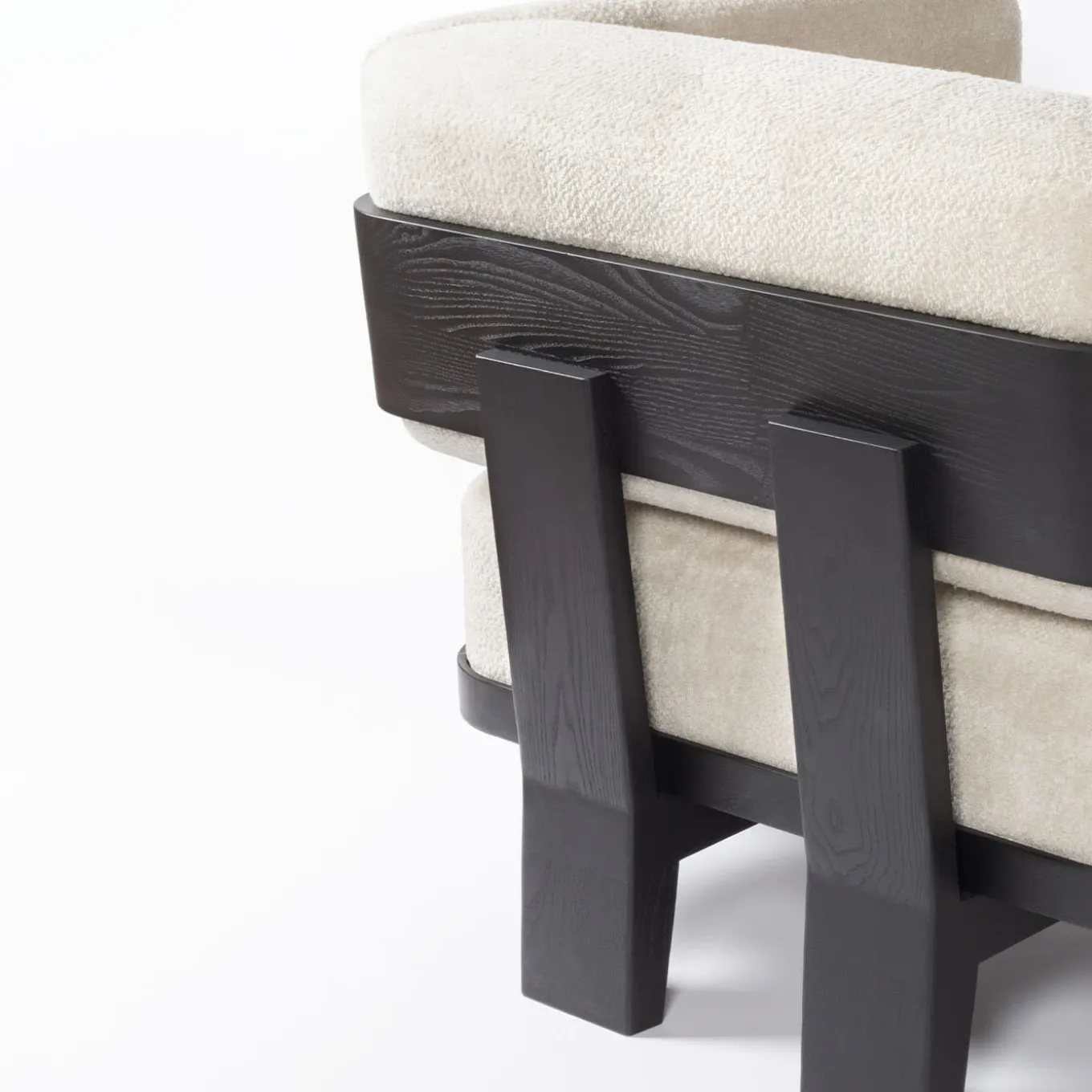 Fondendo volumi massicci con curve assolutamente morbide e avvolgenti in un’accattivante armonia estetica, questa poltrona è un perfetto connubio tra design pulito ed eleganza senza tempo. Realizzata in legno rifinito in noce canaletto, la struttura elegante e geometrica è arricchita da morbidi cuscini imbottiti su seduta, schienale e braccioli, rivestiti con tessuto personalizzato. Personalizzabile in dimensioni e colori su richiesta, si prega di contattare il Concierge per ulteriori dettagli.