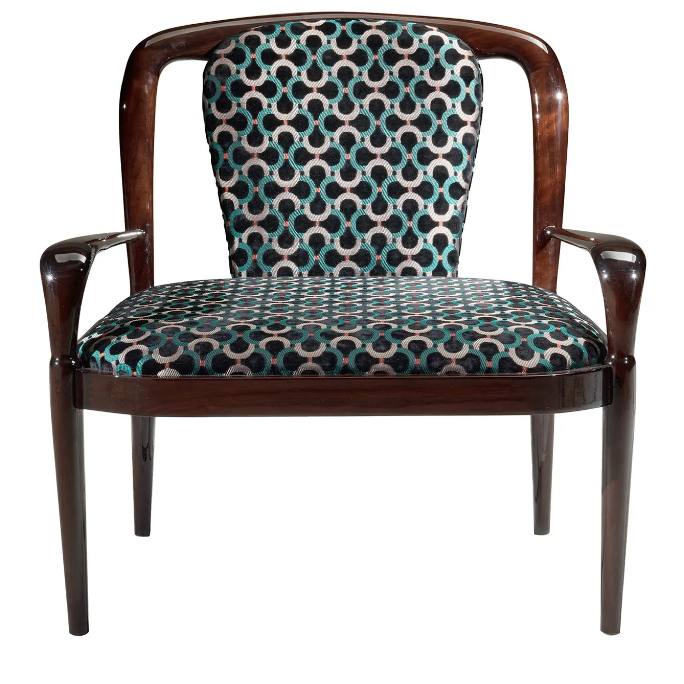 La poltrona ShinyLady presenta un design moderno di metà secolo con una struttura in eucalipto lucido che aggiunge calore e sofisticazione. Rivestita in tessuto art. 3269/003, la sedia mostra un motivo distintivo che ne esalta l’appeal visivo. I suoi braccioli curvi e le gambe affusolate offrono sia comfort che eleganza, rendendola un’opzione di seduta raffinata per interni contemporanei. Progettata da Studio Mamo.
