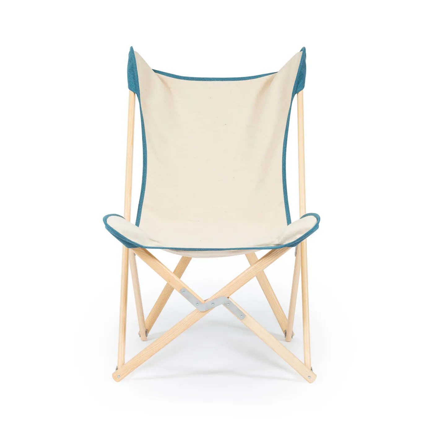 Questa splendida poltrona è un’interpretazione moderna dell’iconica sedia Tripolina utilizzata dalle truppe militari italiane in Libia. Grazie al suo meccanismo pieghevole, alla comoda seduta e alla sorprendente combinazione di colori, questo pezzo è un’aggiunta pratica ed elegante a un interno rustico-chic o contemporaneo. La struttura è realizzata a mano utilizzando il più pregiato frassino massiccio con una finitura naturale che completa splendidamente la seduta/schienale in tessuto color crema (50% cotone e 50% juta) con un orlo in blu-verde realizzato in tessuto 80% acrilico e 20% cotone.