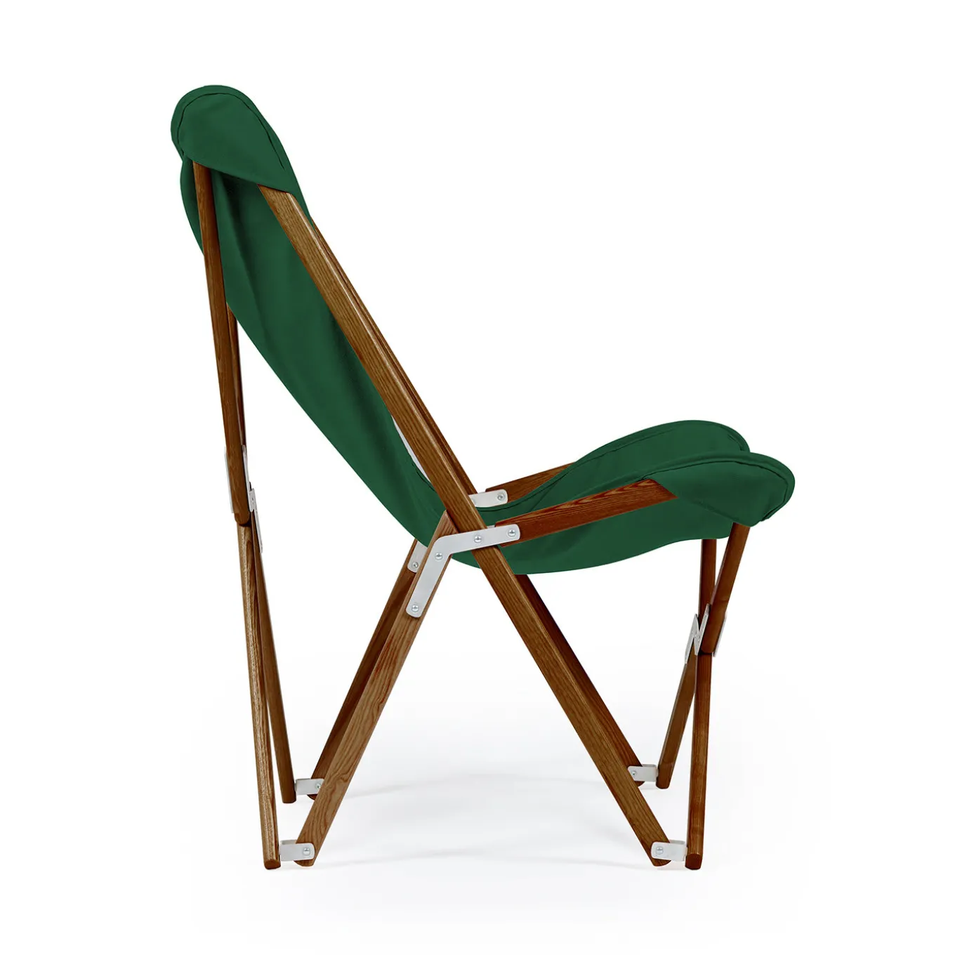L’elegante design della sedia Tripolina è stato creato nel 1855 e reso popolare per le truppe italiane in Libia. Robusto e minimalista, questo pezzo pieghevole è ideale per un interno rustico o moderno, sia come pezzo d’accento che come comoda seduta. Questa sedia iconica è realizzata a mano con una struttura in finissimo legno di frassino tinto teak. Il rivestimento in acrilico al 100% è idrorepellente, resistente ai raggi UV e alle macchie, in una tonalità verde bosco intenso. Questo pezzo è interamente personalizzabile con una scelta di finiture e materiali. La seduta è alta 32 cm.