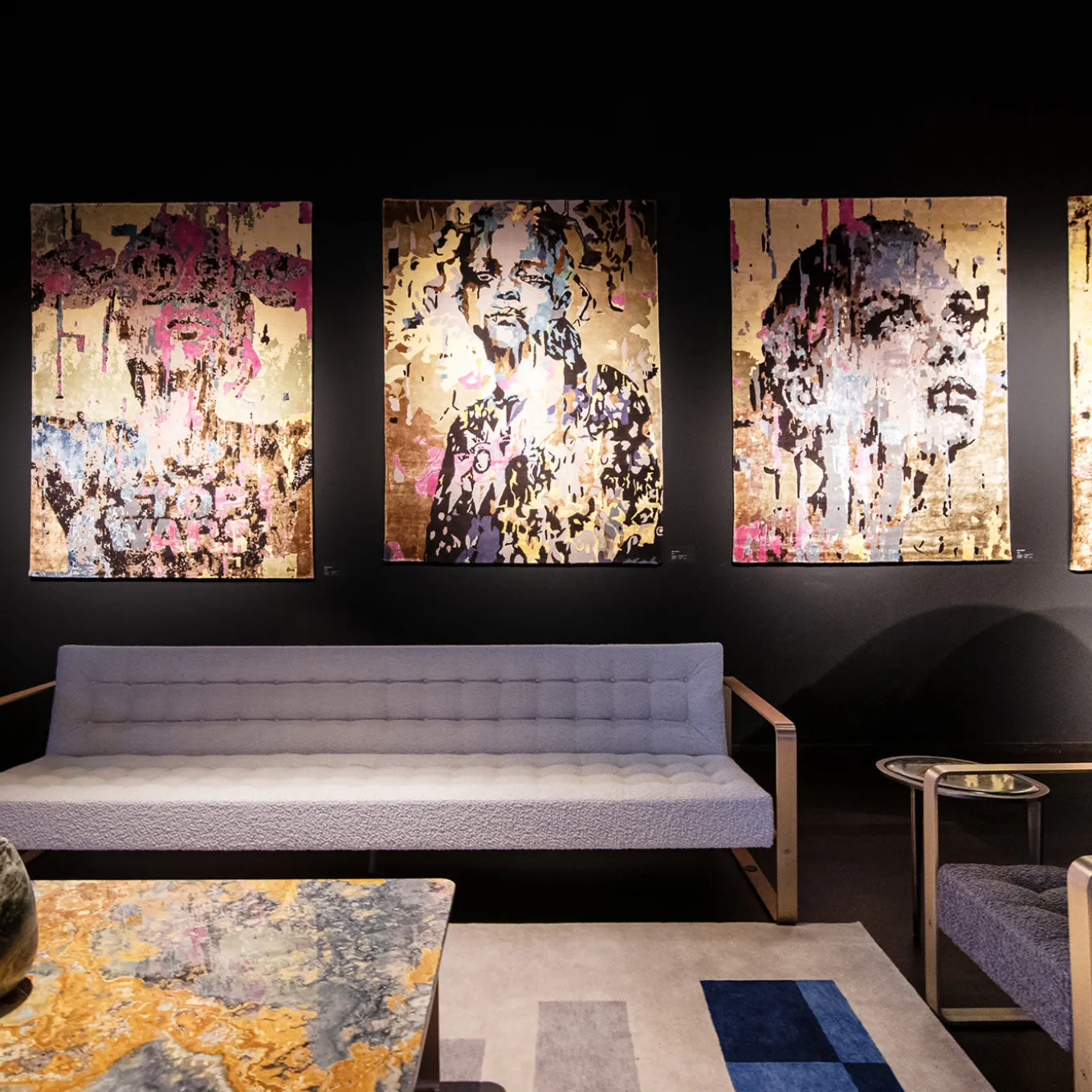 Stupendo e maestoso pezzo d’accento per un interno contemporaneo, questo tappeto è una straordinaria dimostrazione di maestria artigianale e una testimonianza della Pop Art. Disegnato dall’artista espressionista contemporaneo Marco Grassi, è realizzato a mano in 50% seta e 50% lana, con il ritratto colorato ed elegante di una giovane donna.