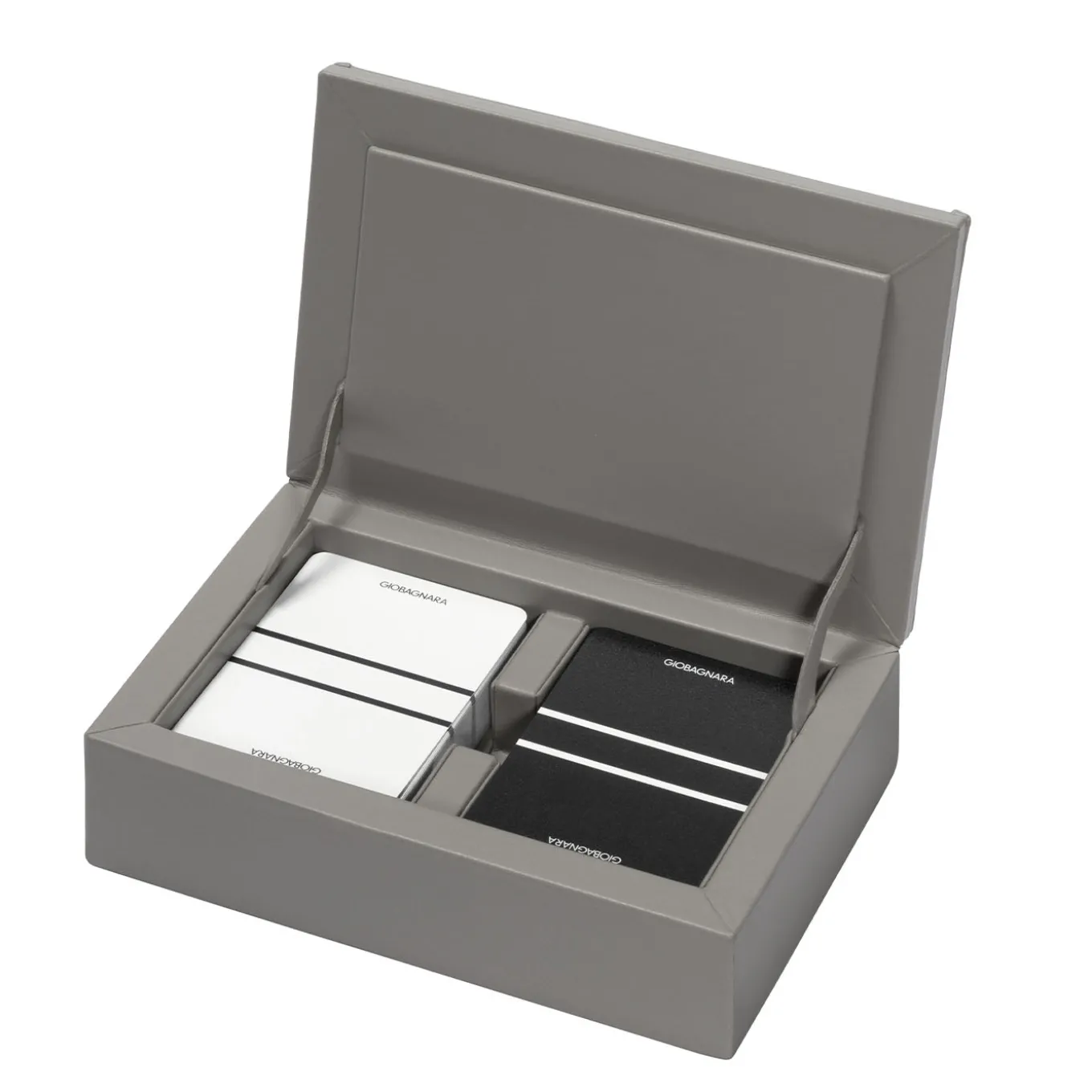 Scatola in pelle con coperchio in pelle intrecciata a mano. Include 2 mazzi di carte da gioco di alta qualità.