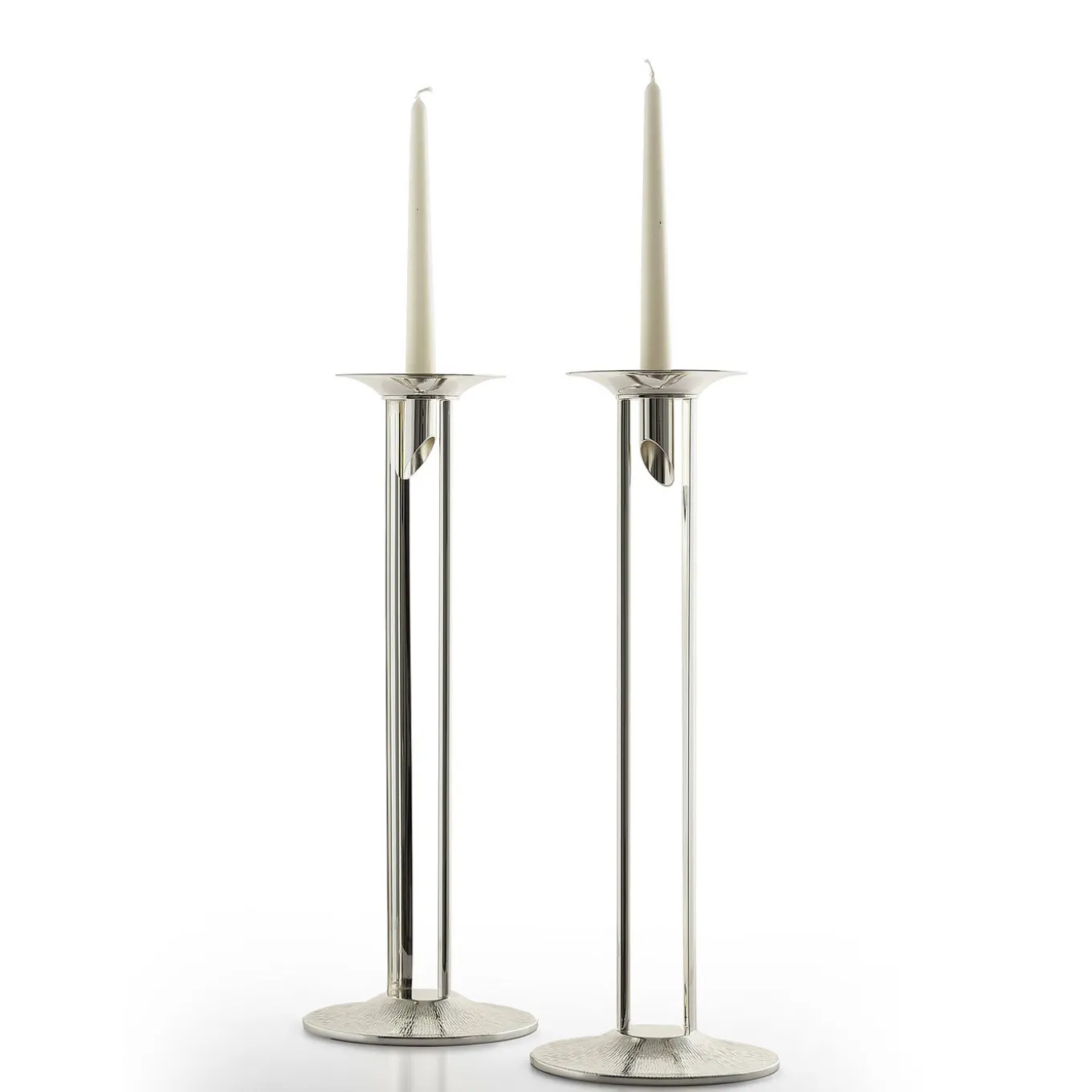 Questo portacandele vanta un design squisitamente moderno e innovativo. La struttura poggia su una base rotonda tornita e successivamente martellata a mano. È sormontata da due pezzi di piastre parallele semicurve che creano un meraviglioso gioco di luci che si riflettono sulle superfici lisce e martellate. La candela poggia su un piccolo vassoio martellato con una sede circolare tagliata all’estremità con un angolo di 45 gradi. Abbinato a una candela o come scultura unica, questo pezzo avrà un valore altamente decorativo in qualsiasi superficie interna.