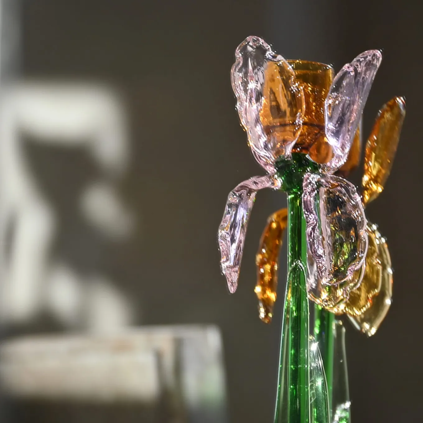 Un design superbo, magistralmente realizzato a mano in vetro soffiato a bocca, questo portacandele è stato creato in co-creazione con Summerill e Bishop London. Dallo schizzo di Summerill e Bishop London e dal lavoro di Catherine Urban e dei maestri vetrai, nasce questa collezione in co-creazione di due portacandele: Iris e Lotus. Il vetro si apre come un fiore, ospitando al suo centro lo spazio per un candeliere. I colori sono chiari e delicati, nelle sfumature della natura primaverile.