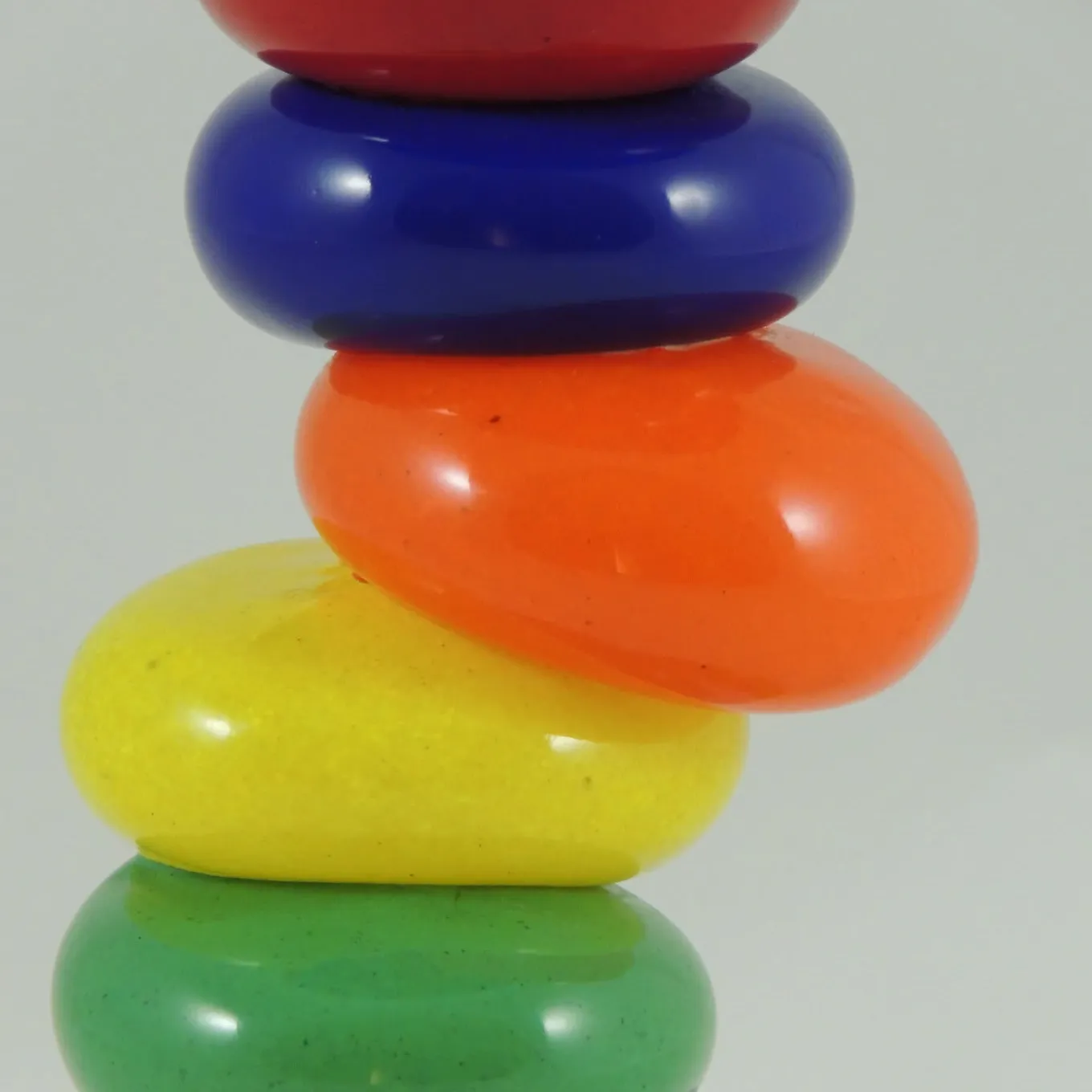 Questo suggestivo portacandele multicolore in vetro di Murano fa parte della collezione “Bilico”, presentata alla prima Mostra Internazionale Aperto Vetro nel 1998 e disegnata da Luciano Gambaro. Il maestro Matteo Tagliapietra realizza ogni oggetto utilizzando vetri colorati opachi. La base e la parte superiore sono soffiate a bocca.