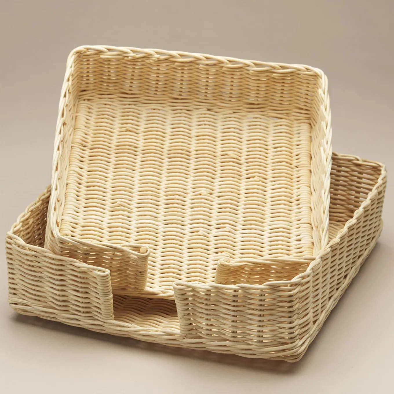 Linee pulite che delineano superbe e intricate trame di vimini definiscono l’estetica coinvolgente di questo cestino per tovaglioli della collezione Mies en Place, qui proposto in una variante più grande ma disponibile anche in una variante più piccola di 18,5 x 18,5 x H 5,5 cm. Un trattamento a base d’acqua permette di mantenere intatta la bellezza naturale delle canne, per un oggetto da tavola irrinunciabile che celebra l’artigianato e la natura al tempo stesso.