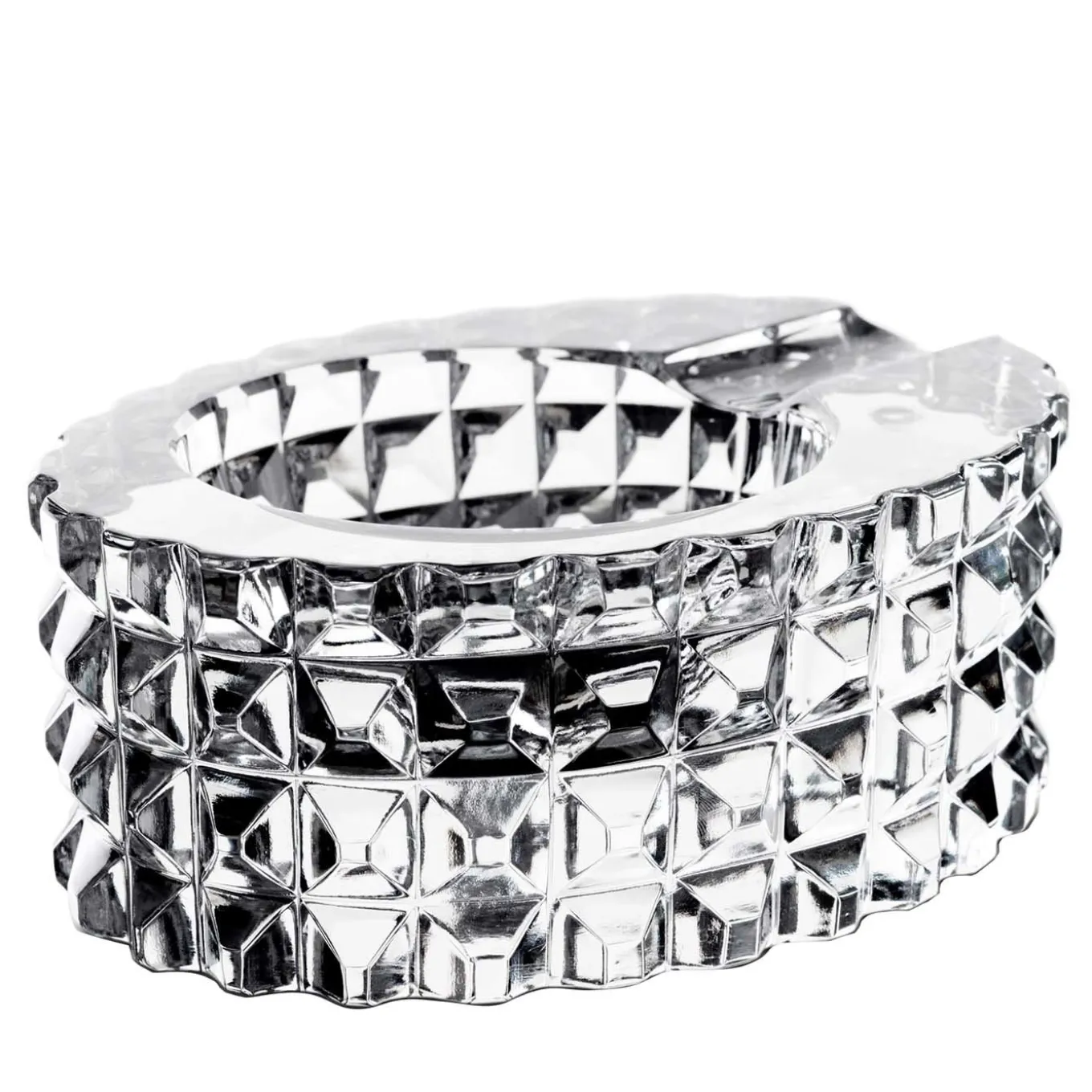Questo superbo oggetto di arredamento funzionale è un raffinato esempio di squisita artigianalità. Il suo corpo ovale è realizzato interamente in cristallo con una texture distintiva creata da un motivo quadrato che riflette la luce circostante creando una sofisticata brillantezza in qualsiasi punto della casa. Parte della collezione Luxe’, questo pezzo unico può essere abbinato all’accendino della stessa serie per un set completo.