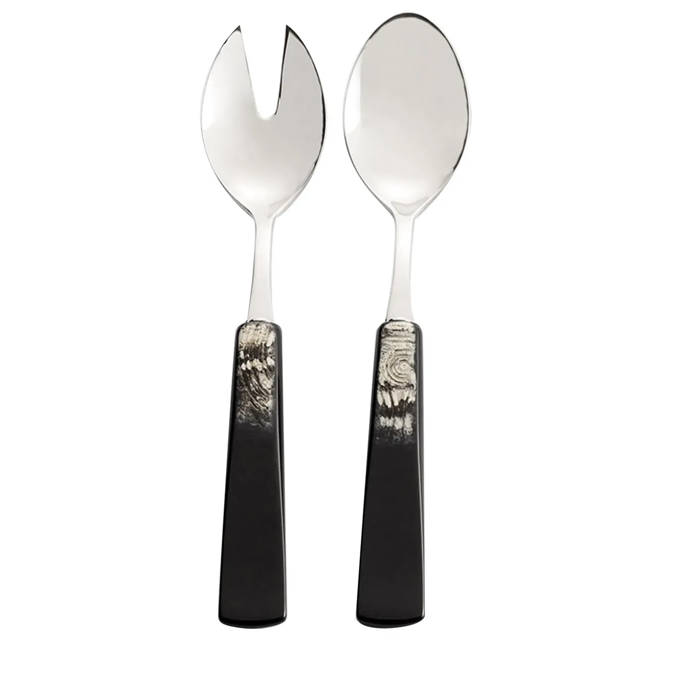 Un modo distintivo ed elegante per servire una fresca insalata durante un soleggiato pranzo estivo, questo squisito set di posate da insalata emana una personalità affascinante e felpata. Definiti da dettagli accattivanti, i due manici sono realizzati a mano in resina sostenibile a base biologica che si armonizza elegantemente con il corpo in acciaio inox, rifinito con un accattivante effetto lucido e specchiato. Il set è corredato da una raffinata custodia in velluto.