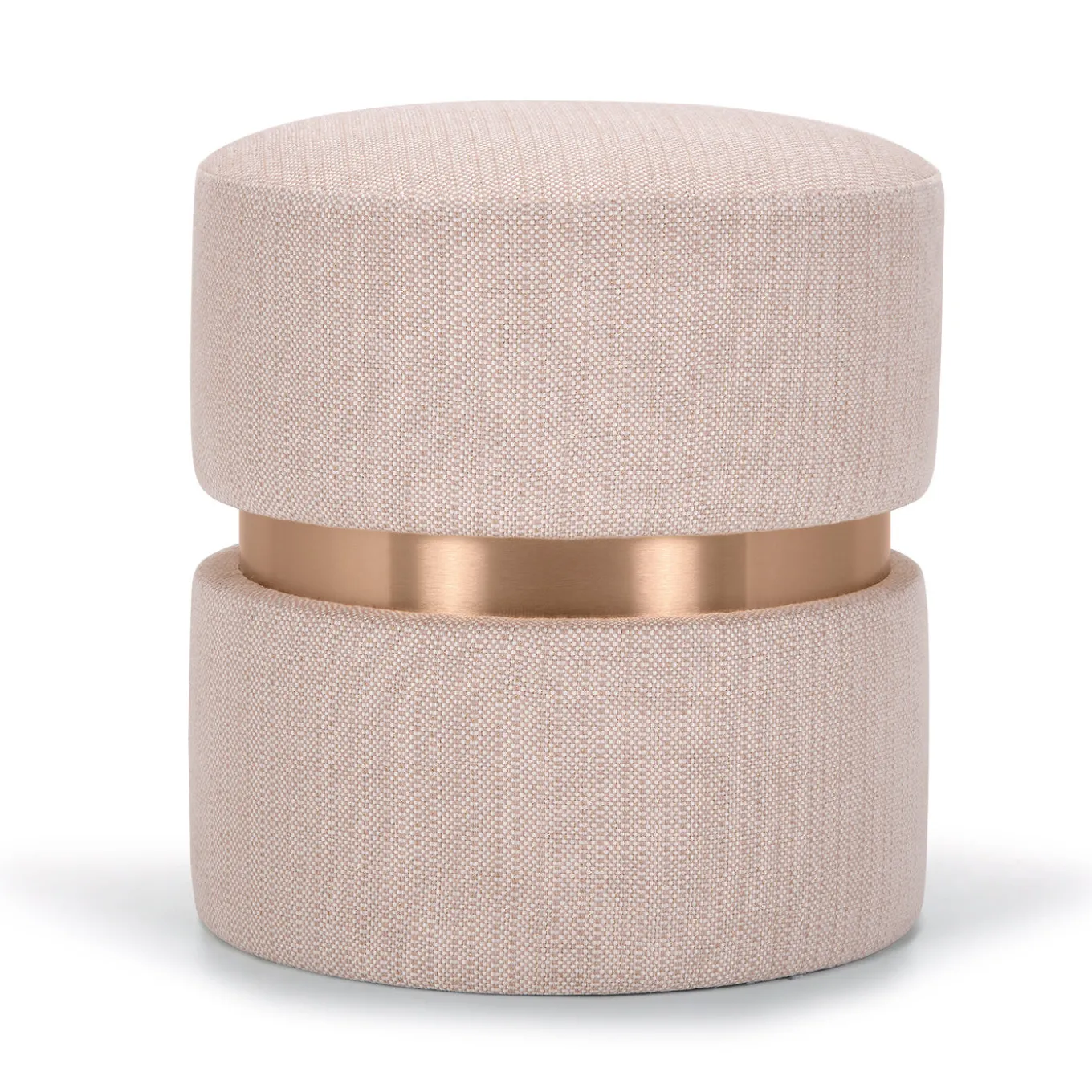Le stravaganti ninfe greche della sera e dell’alba dorata hanno ispirato questo elegante pouf cilindrico, abilmente realizzato per aggiungere un accento romantico a qualsiasi arredamento. I due cuscini sono riccamente imbottiti per offrire il massimo comfort, aumentato dal rivestimento jacquard rosa cipria con fili di lurex luminosi. La sezione centrale è caratterizzata da dettagli luminosi in laminato satinato color rame.