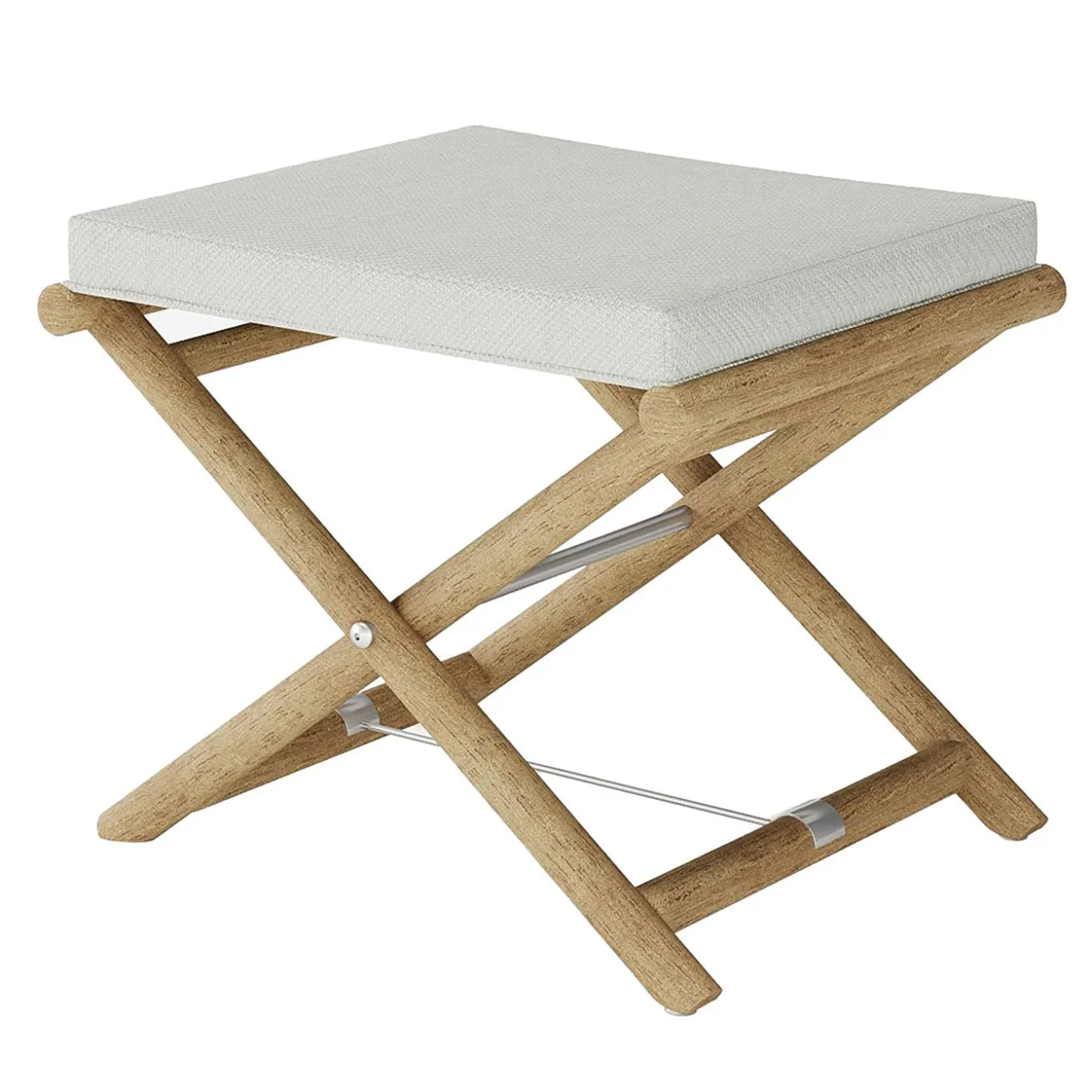 Ispirato allo stile nautico, questo pouf è stato progettato all’insegna della praticità e dell’eleganza. La sua robusta struttura in legno presenta un design pieghevole, arricchito anche da raffinati dettagli in acciaio inox, che lo rende adatto ad accogliere un ospite inatteso per un drink all’aperto. La seduta imbottita è rivestita in Batyline bianco sporco, un tessuto in poliestere durevole e resistente agli agenti atmosferici. Cuscino di seduta in tessuto Cat A con batlyne e gomma drenante inclusi.