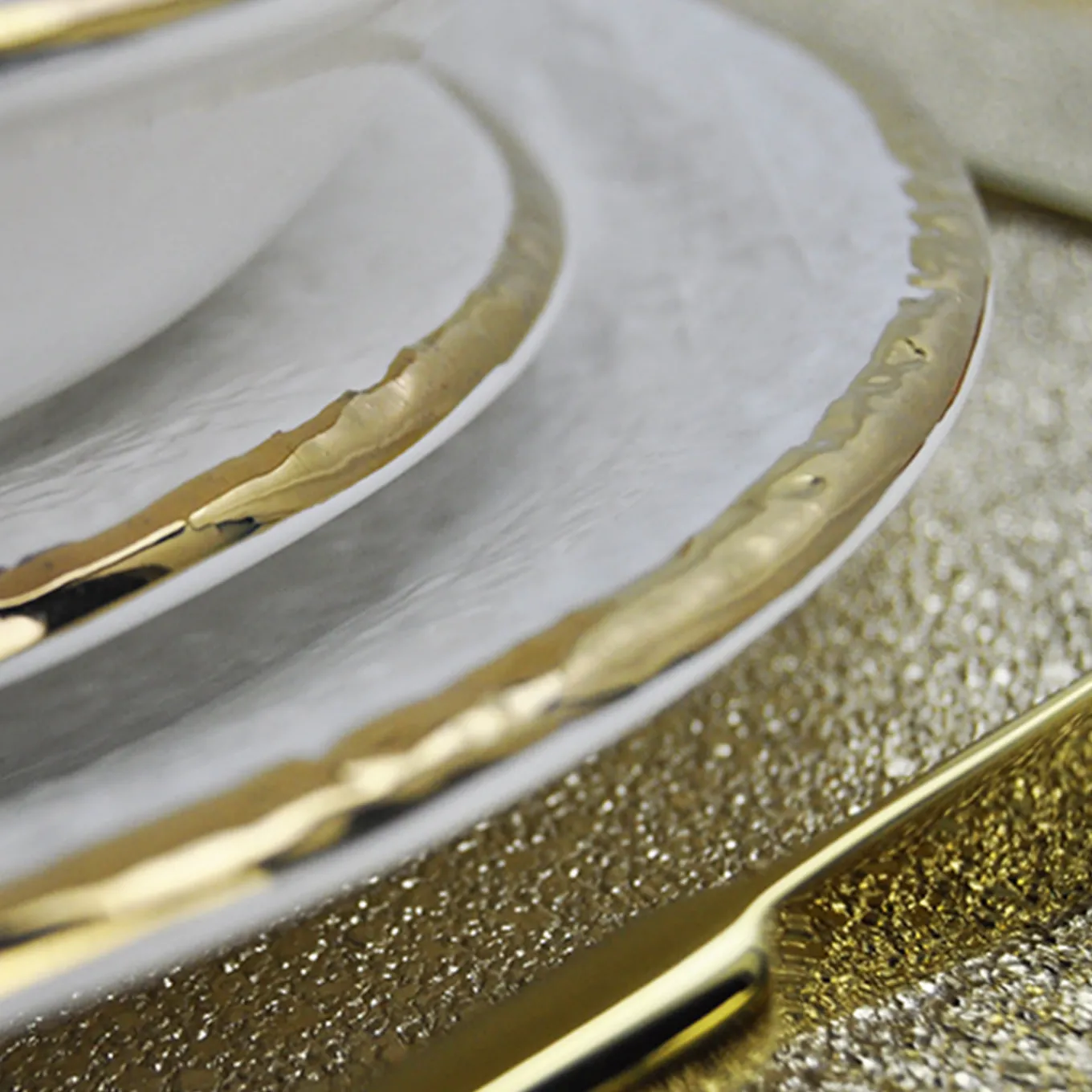 Elegante e audace, con un tocco dorato, questo set da 18 pezzi in ceramica Preta Oro aggiungerà carattere e colore alla vostra tavola. Il set comprende un piatto da 26 cm, un piatto da dessert da 20 cm e una zuppiera da 21 cm, in bianco latte con bordo dorato. Lavabile in lavastoviglie.