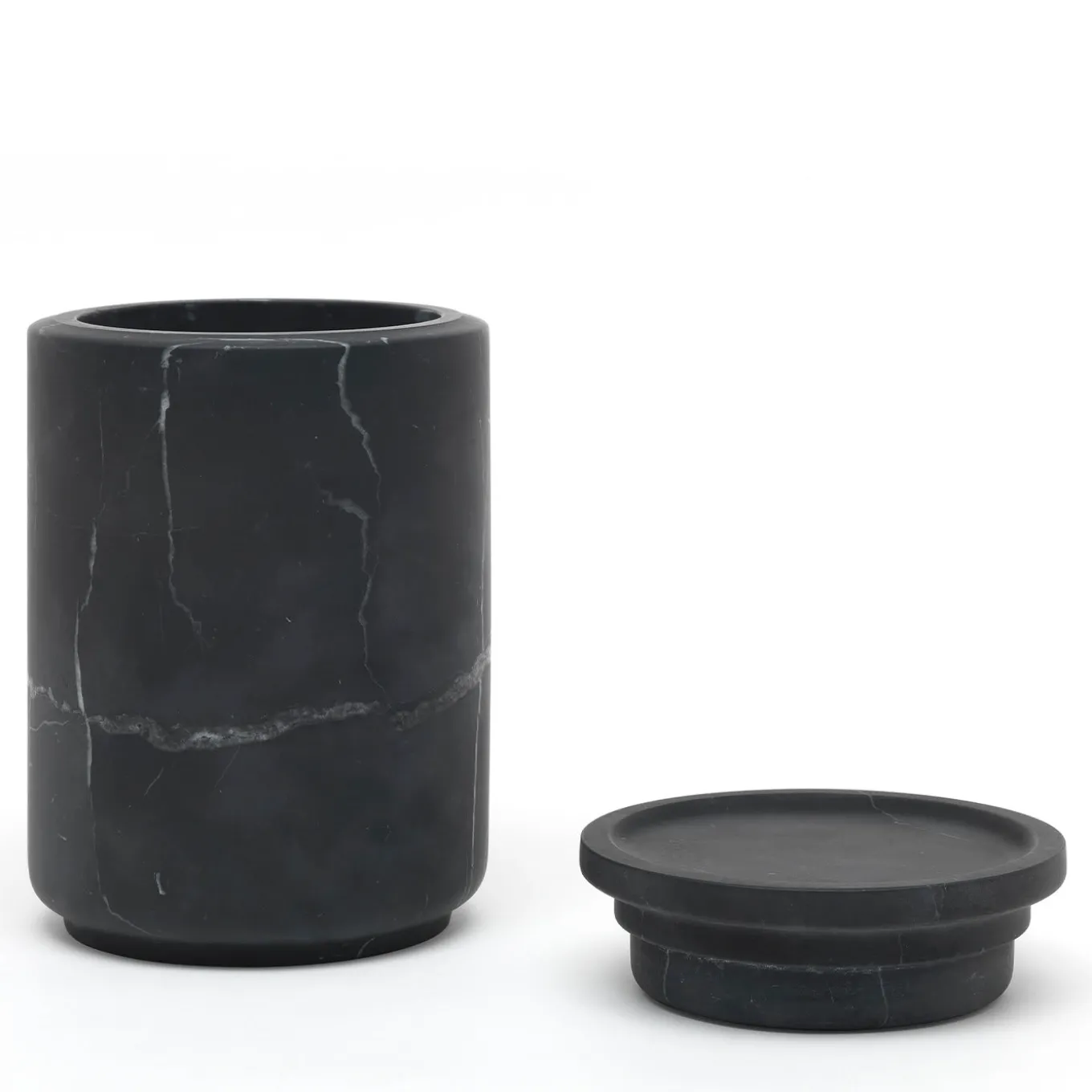 L’uso del pregiato marmo nero Marquina conferisce fascino misterioso e profondità visiva a questo sorprendente vaso, che sarà una superba aggiunta a qualsiasi collezione di stoviglie contemporanee. Composto da un coperchio ammaccato e da un contenitore cilindrico con base affusolata, il suo corpo cilindrico presenta una superficie nera liscia e opaca con sottili e seducenti venature bianco-grigie, caratteristiche uniche che rendono ogni pezzo assolutamente unico. Si prega di notare che i marmi e le pietre sono materiali naturali e possono differire anche se provenienti dalla stessa cava o dallo stesso blocco. Il prodotto mostrato può differire dagli articoli acquistati. Ogni pezzo è unico.
