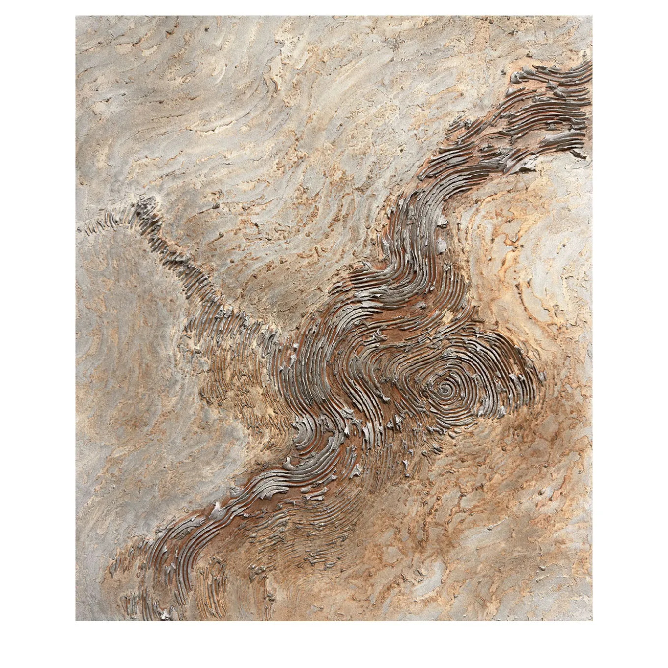 Ispirato alla lenta trasformazione della pietra nel tempo, questo dipinto riflette la bellezza dei paesaggi stratificati della natura. Le creste fluenti e le calde tonalità del marrone creano un senso di forza tranquilla, mentre sottili accenni di grigio e terracotta aggiungono profondità. La superficie sembra viva, come onde di terra delicatamente scolpite dal vento e dall’acqua. La sua texture organica e i suoi colori terrosi conferiscono un’energia naturale a qualsiasi ambiente, rendendolo rilassante e di grande impatto visivo. Pezzo unico.