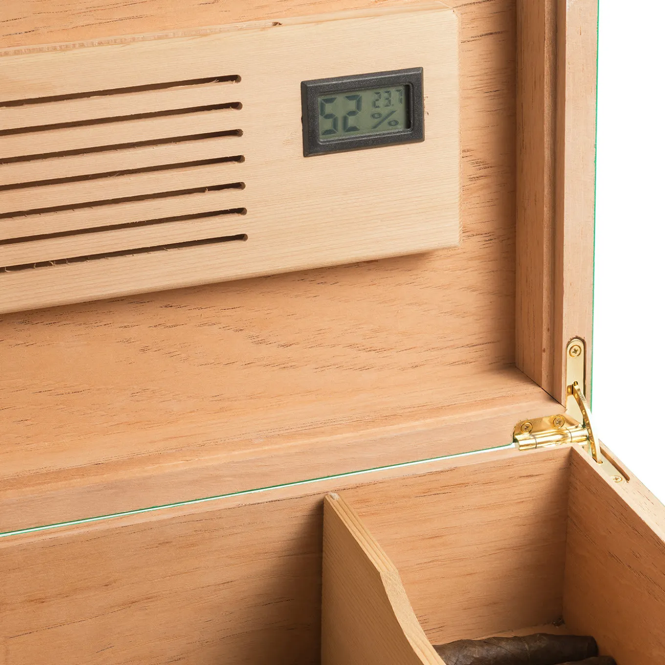 Un’accattivante e vibrante tonalità di rosso esalta la silhouette di questo portasigari in legno di cedro, infondendo a un pezzo di design classico un affascinante tocco di modernità. Pratico e raffinato, può contenere fino a 30 sigari ed è dotato di un preciso sistema di umidificazione e comprende un igrometro e un supporto Boveda. Il pezzo è completato da dettagli in metallo con finitura dorata.