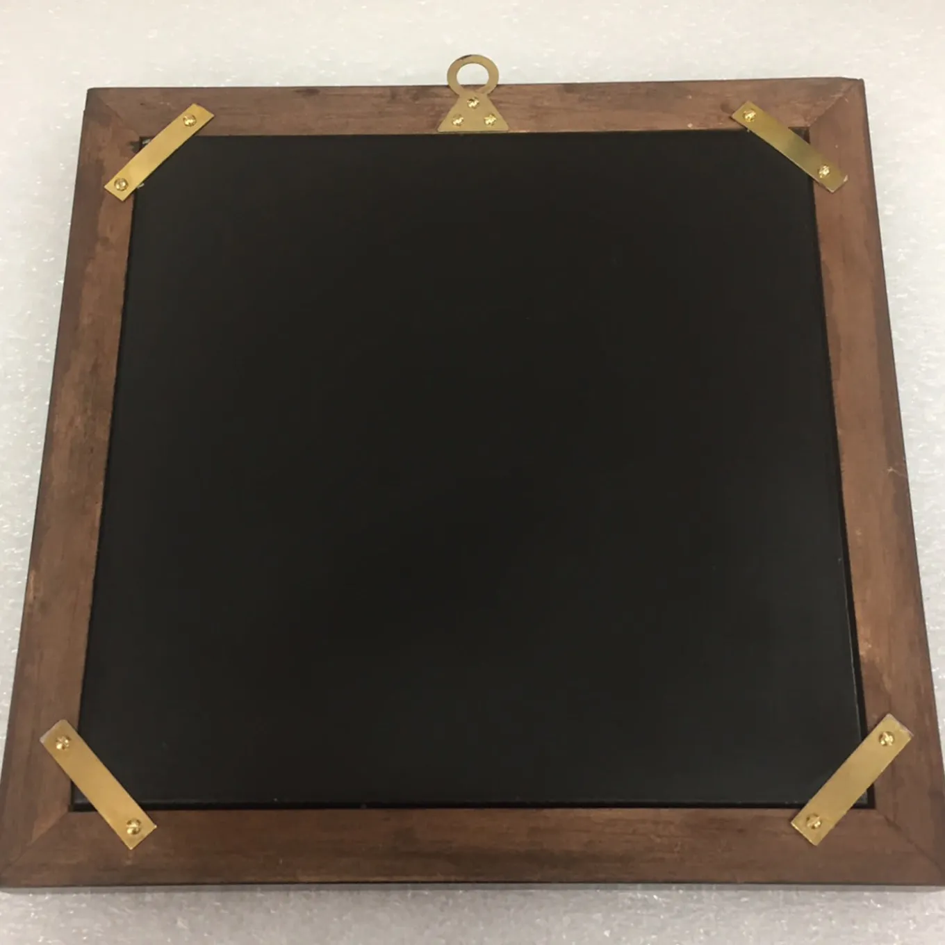 Una cornice in legno nero circonda un sofisticato inserto in ardesia decorato a mano con scagliola per creare un disegno straordinario di una testa di leopardo circondata da insetti e fiori. Completato da una finitura a cera satinata, questo pezzo unico e interamente realizzato a mano misura 24 x 24 cm, con una piastrella interna di 20 x 20 cm.
