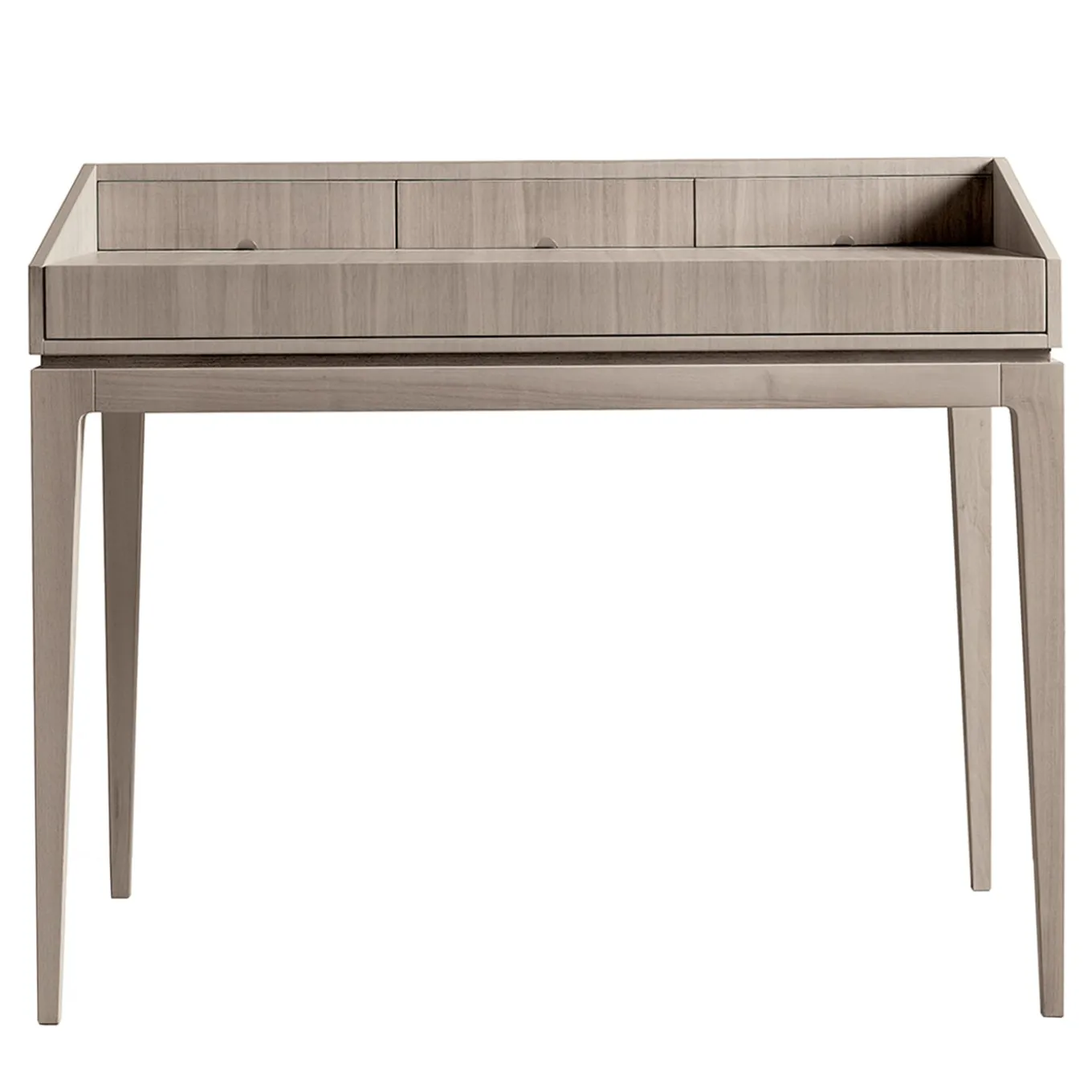 Estetica e funzionalità si fondono nella scrivania in legno massiccio Ideale. Un pezzo di artigianato di alta qualità fatto su misura per l’uso quotidiano e per arredare con stile. La scrivania è caratterizzata da: piano impiallacciato in listellare, struttura e gambe in pregiato massello di noce, vano portaoggetti e cassetti.