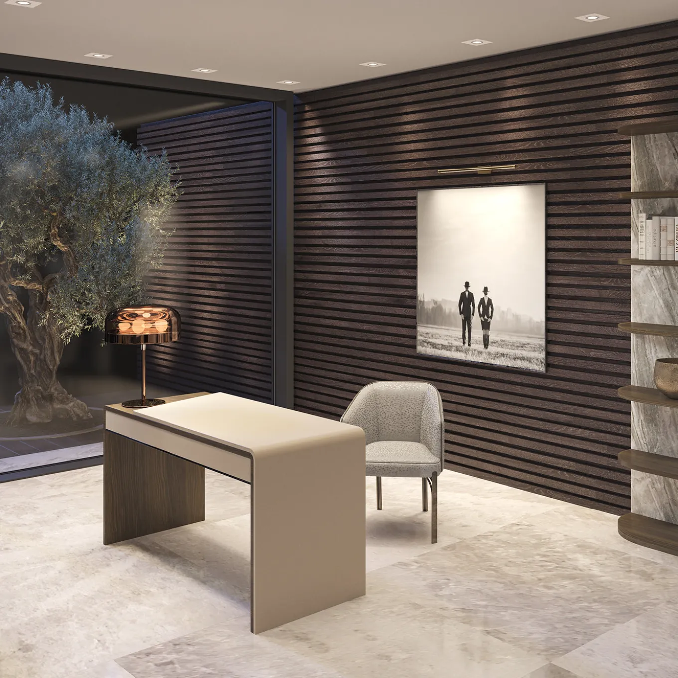 Questo mini scrittoio dal design moderno ed elegante presenta linee pulite e finiture raffinate, perfette per integrarsi in qualsiasi ufficio o spazio studio. Dotato di due cassetti, offre una soluzione pratica per lo stoccaggio, mentre il sistema integrato di gestione dei cavi aiuta a mantenere l’area di lavoro ordinata e libera da ingombri, favorendo concentrazione e organizzazione. La struttura bilancia con armonia stile e funzionalità, creando un ambiente di lavoro sofisticato.