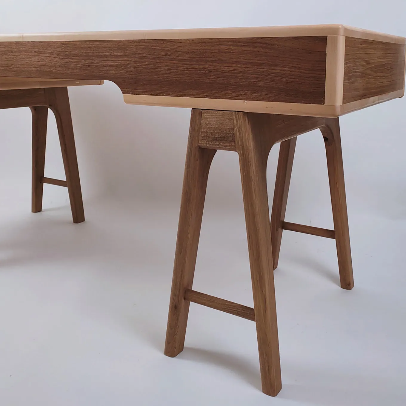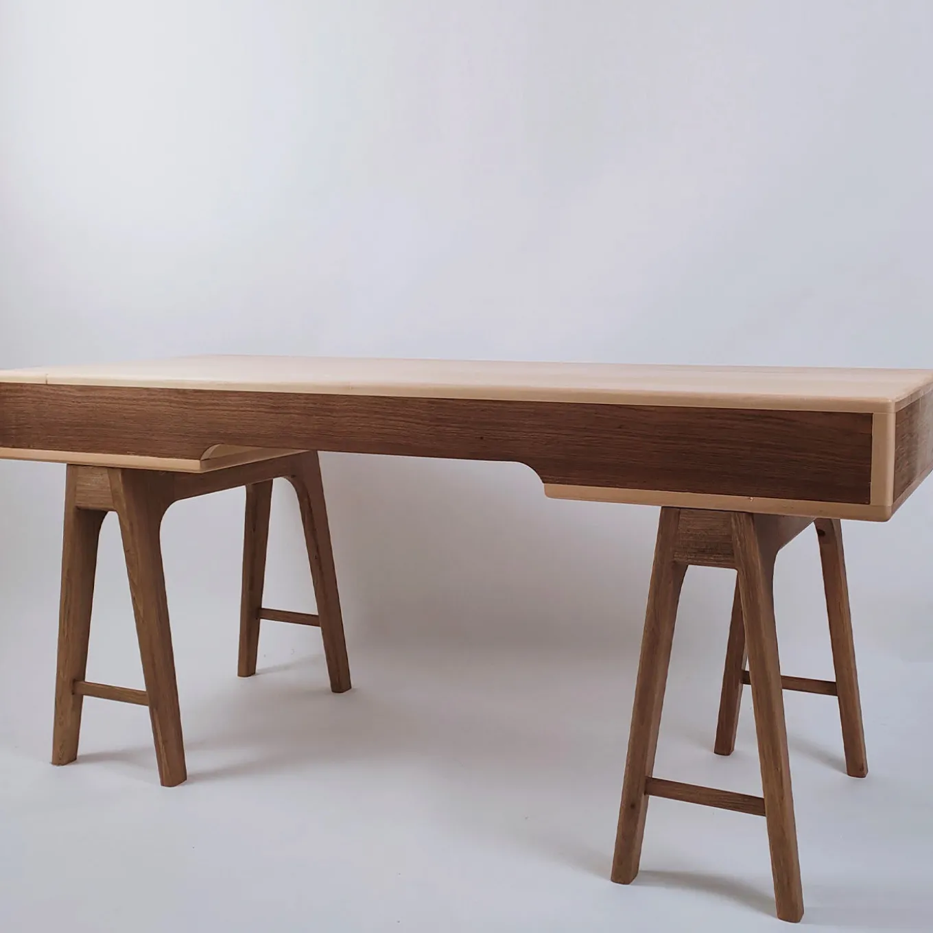 La scrivania Nathalie è una postazione di lavoro all’avanguardia, caratterizzata da due gambe a cavalletto e da un ampio piano d’appoggio con cassetti nascosti per mantenere lo spazio d’ufficio elegantemente ordinato. Un design in stile scandinavo, che si rifà alla sua inclinazione per un’architettura elegante, essenziale e senza complicazioni, questa scrivania combina il legno di noce (base e cassetti) con quello di acero massiccio (piano) per un suggestivo contrasto cromatico. I cassetti sono costruiti con incastri a coda di rondine e sono dotati di guide di scorrimento metalliche nascoste e di chiusura Blumotion. Completamente personalizzabile su richiesta, si prega di contattare il Concierge per i dettagli.